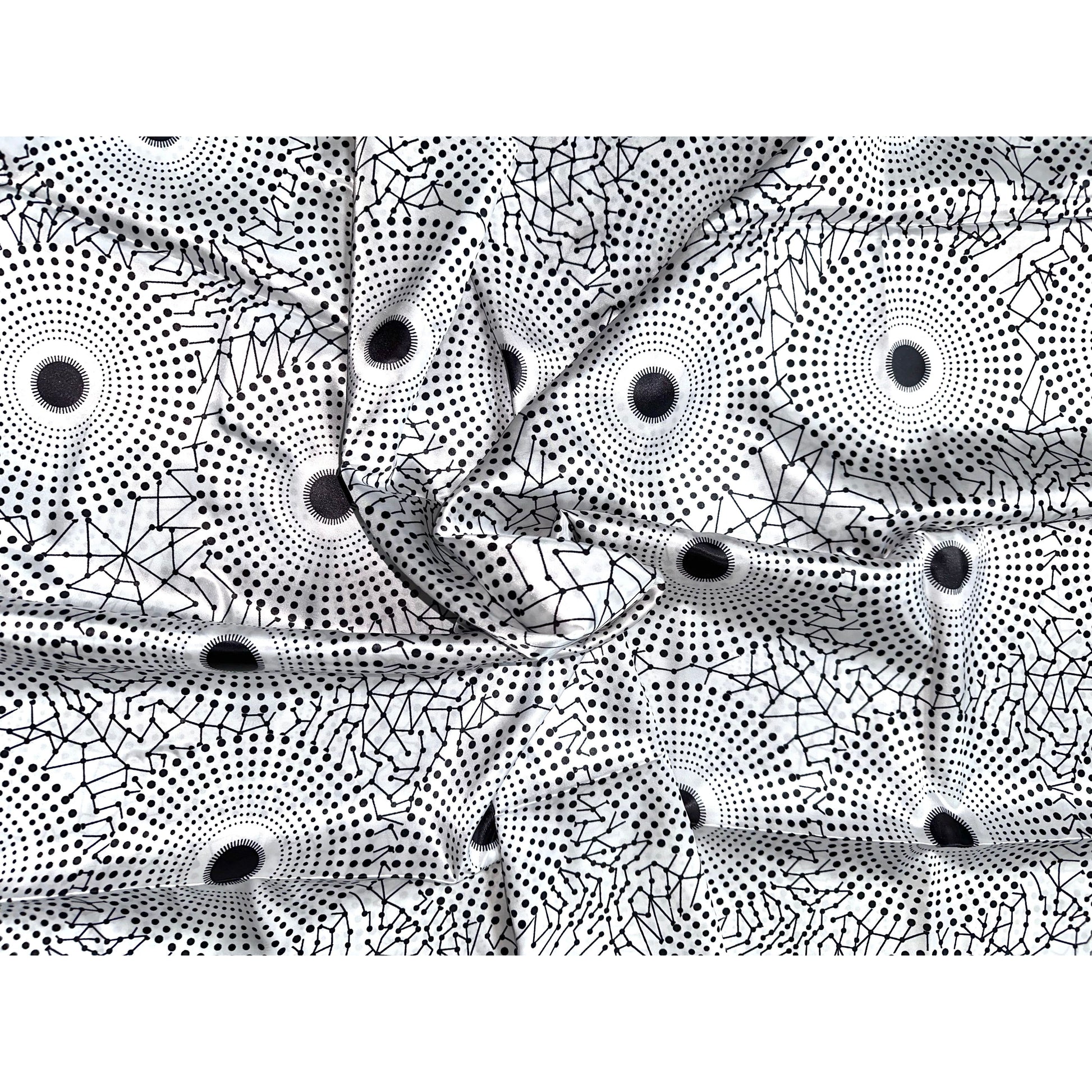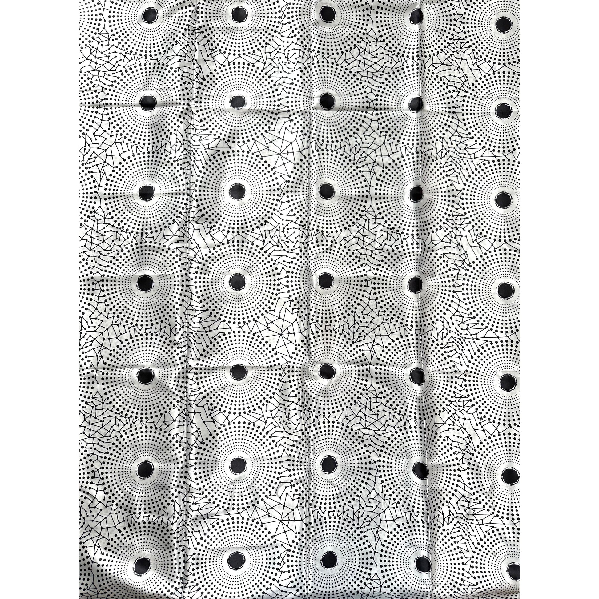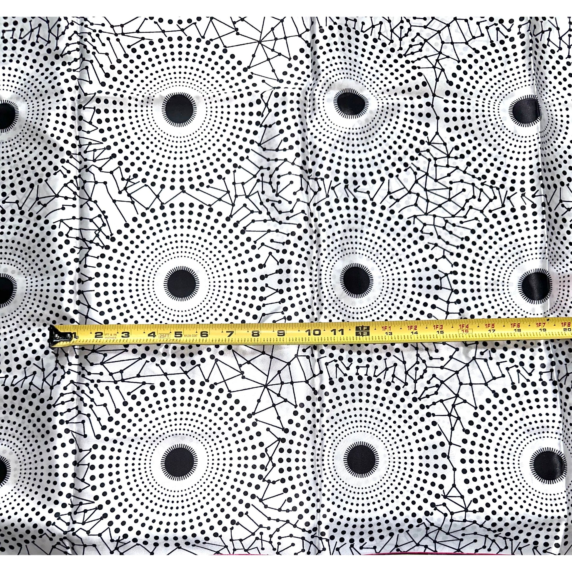 African Print, Satin Fabric- Black, White "Bullseye", Yard or Wholesale