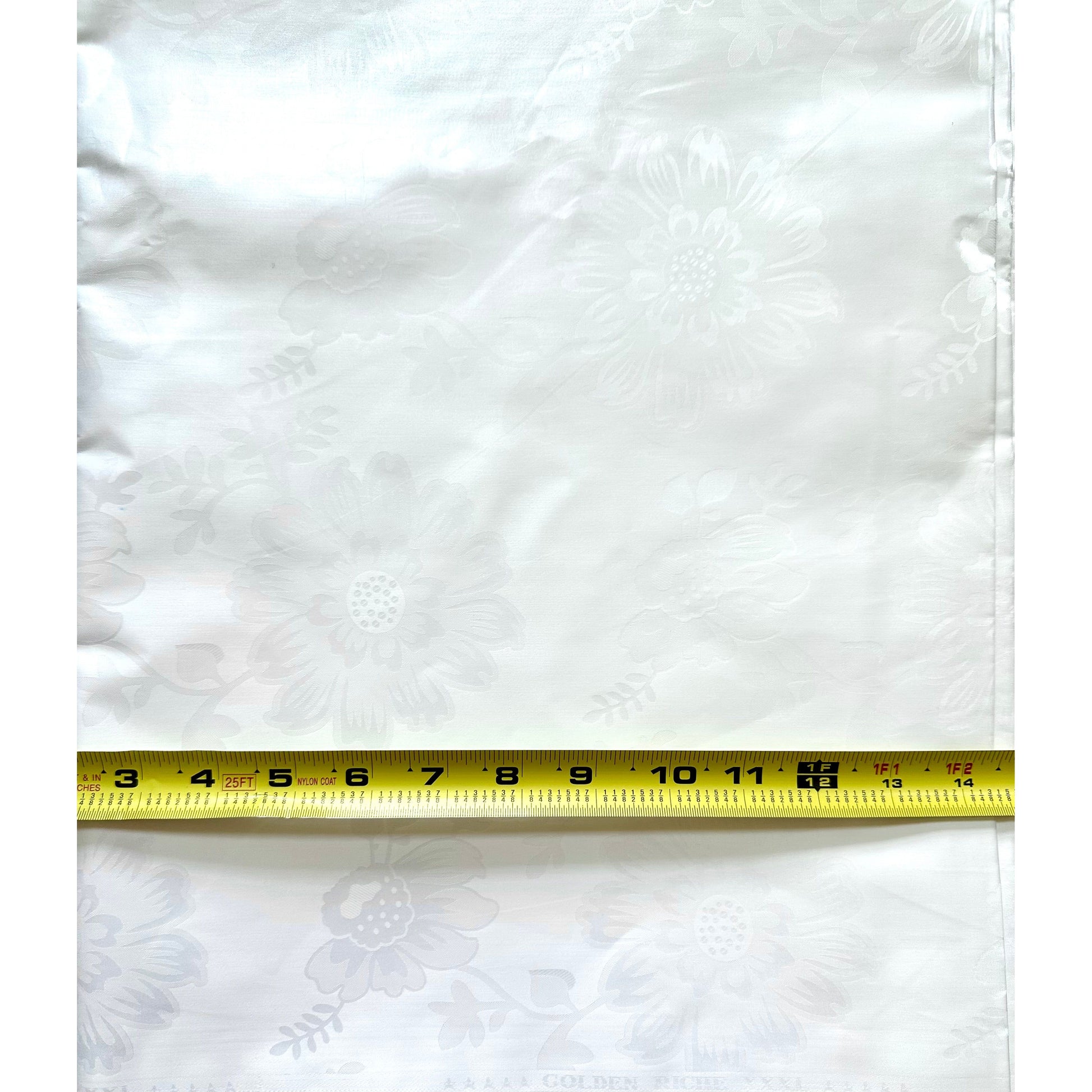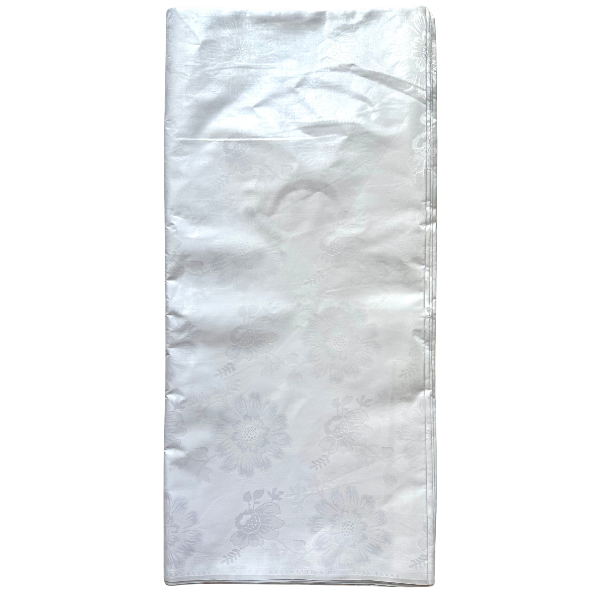 African Bazin (Brocade) Fabric - White “Peony”, Per Yard