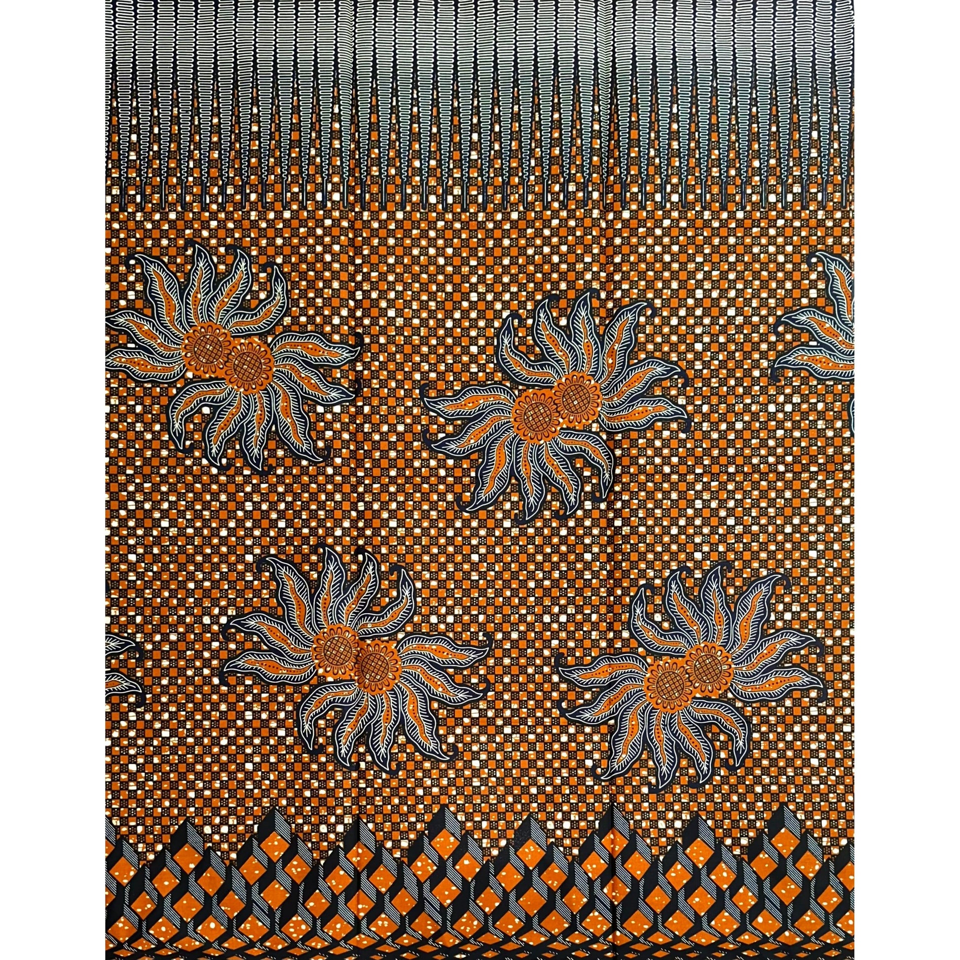 African Fabric/ Ankara - Brown, Navy 'Iweji’ Design, YARD