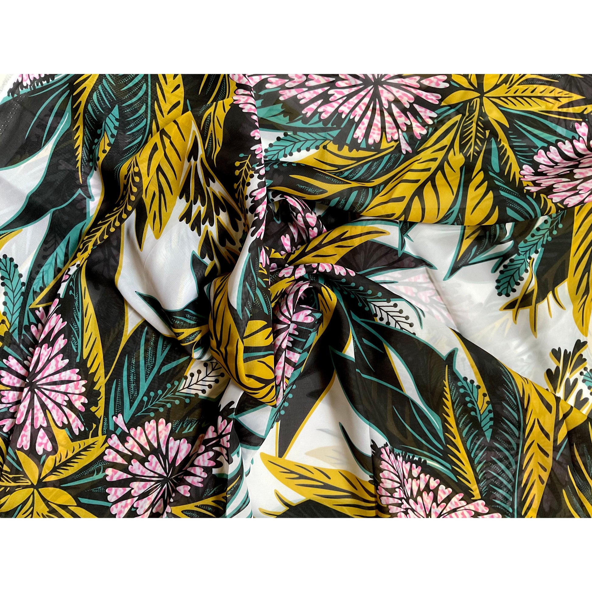 African Print, Chiffon Fabric- Pink, Teal, Black, Gold "Views from Nungwi Beach", ~ 2 Yards