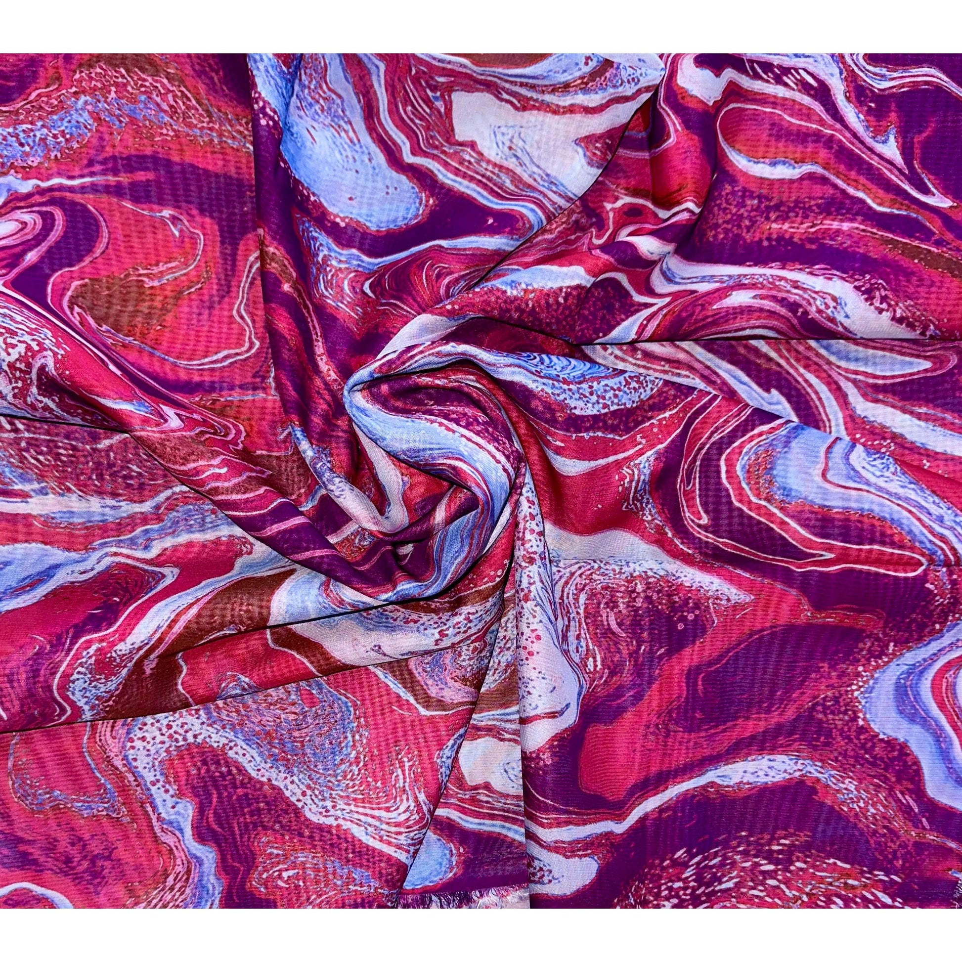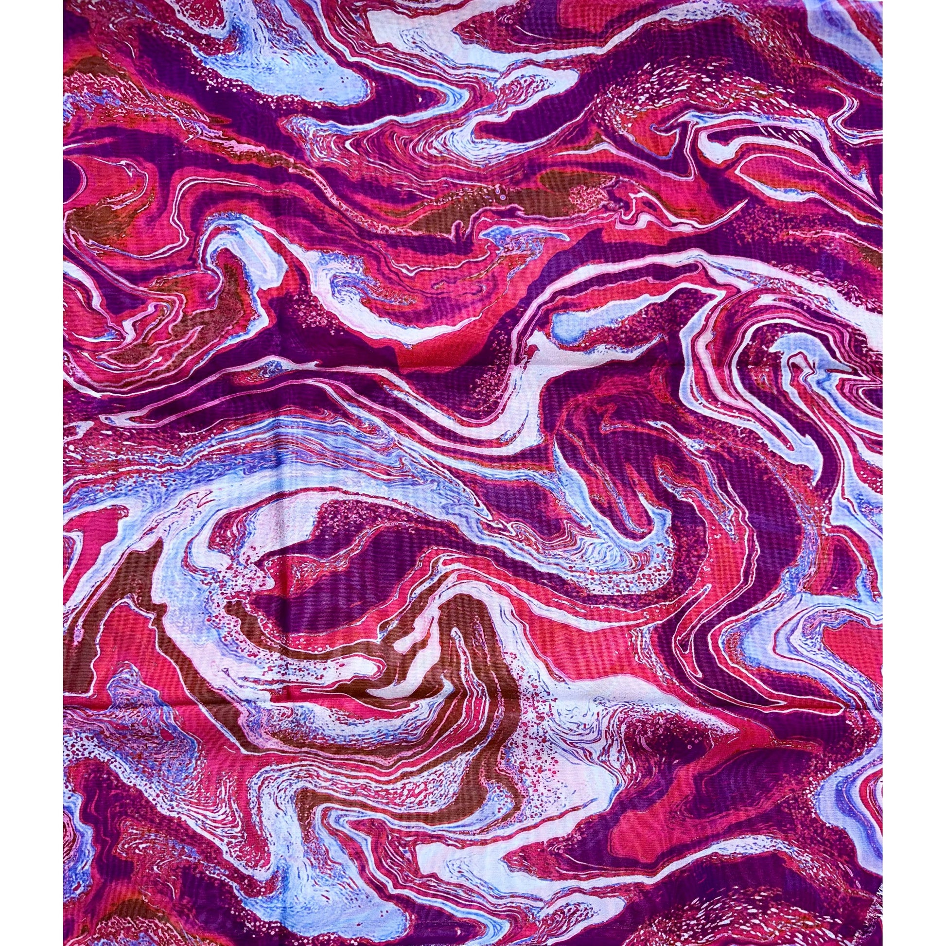 African Print, Chiffon Fabric - Purple, Dark Red, Pink "Wasi Whirl", ~2 Yards