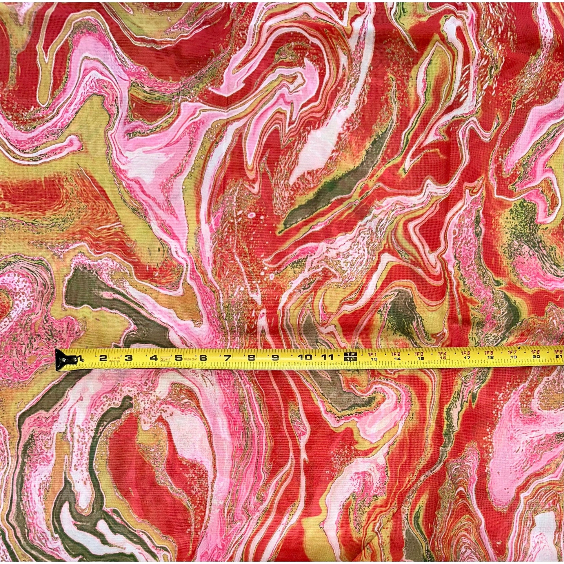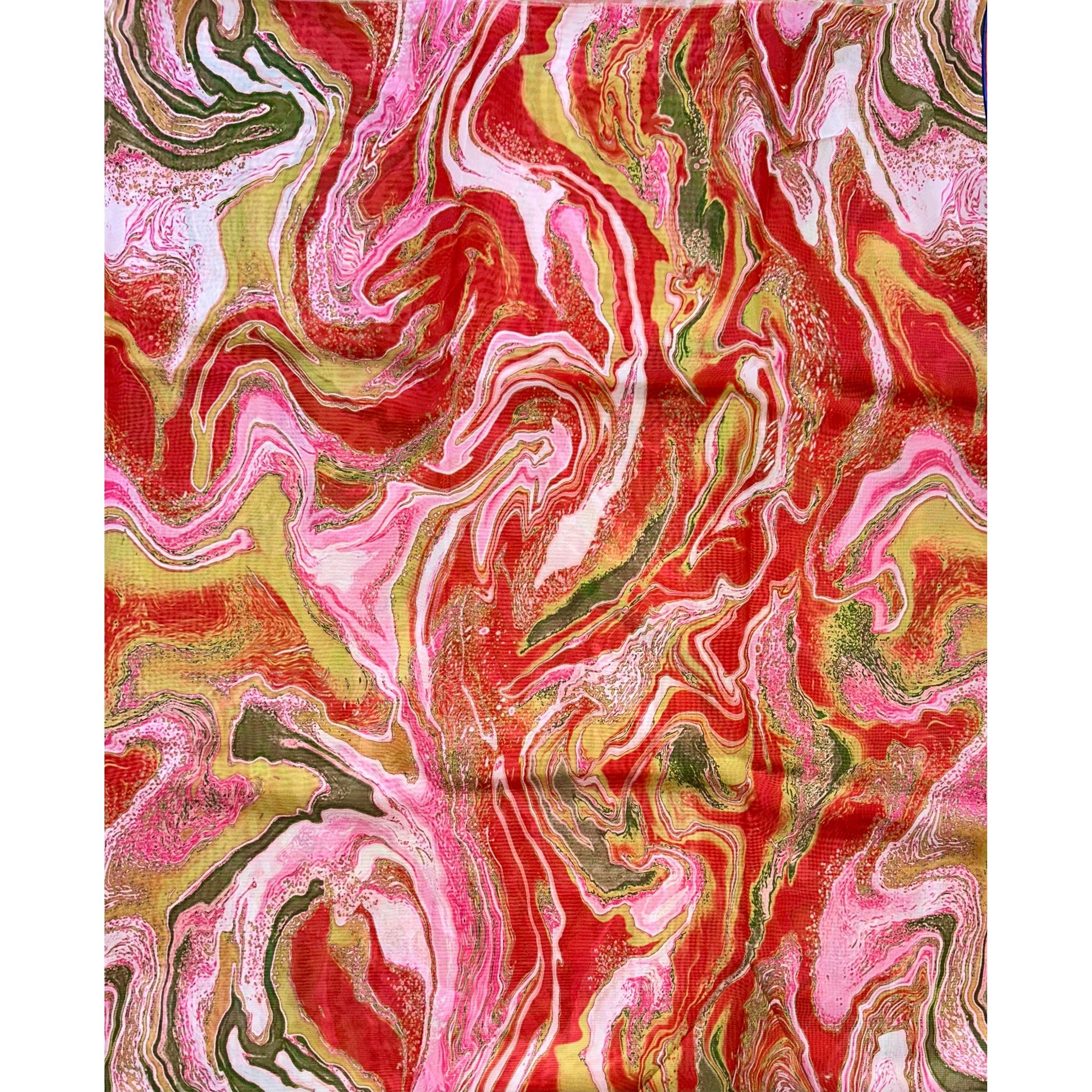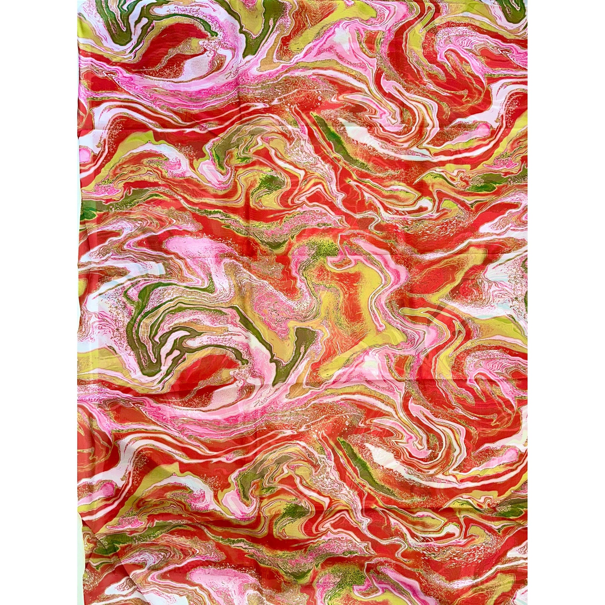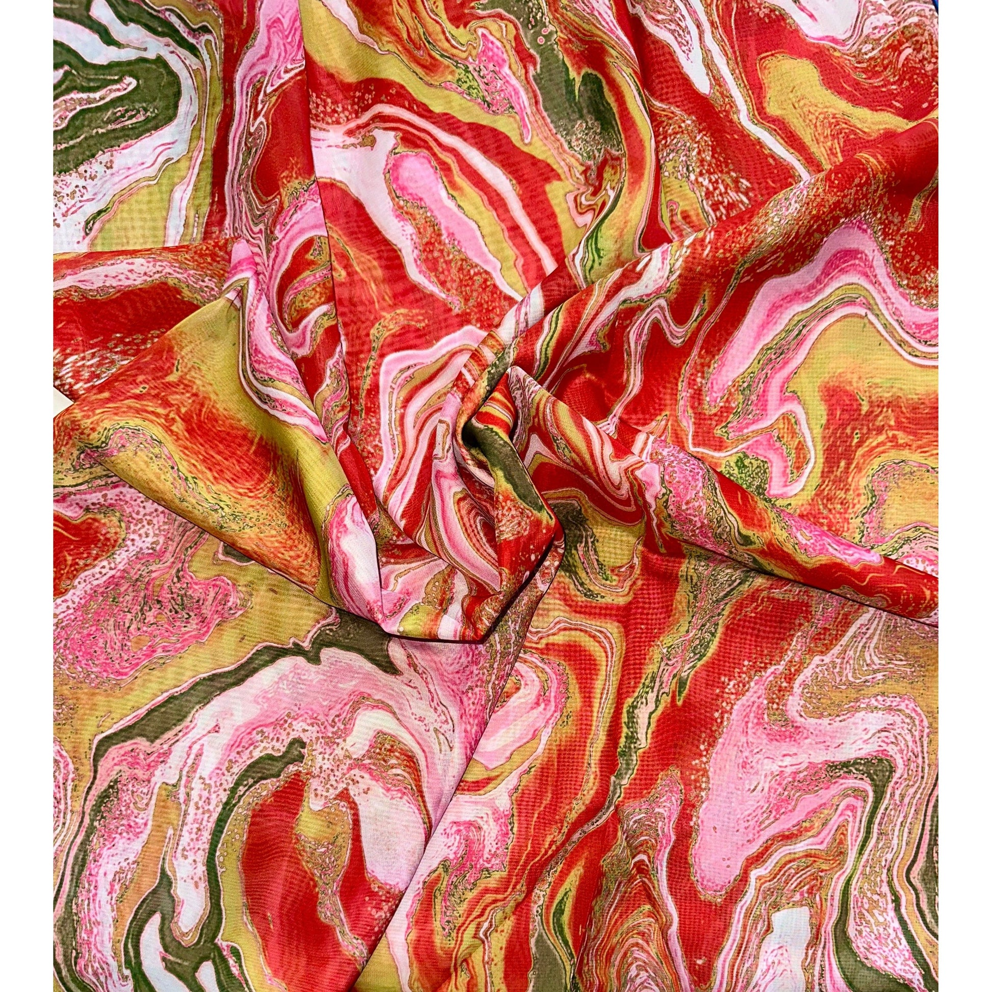 African Print, Chiffon Fabric - Red, Pink, Gold "Wasi Whirl", ~2 Yards