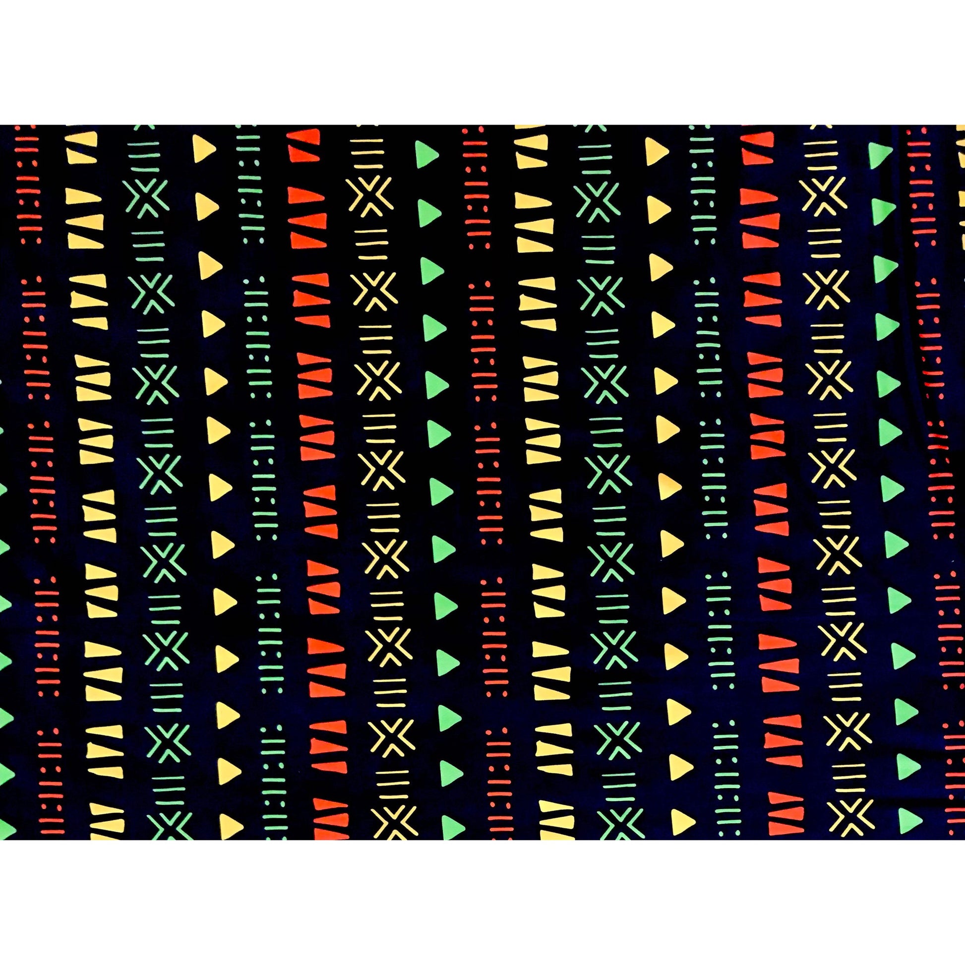 This beautiful African print is a 4-way stretch, polyester knit. The fabric is cool to the touch, has a smooth 'hand', will not wrinkle and has a matte finish.