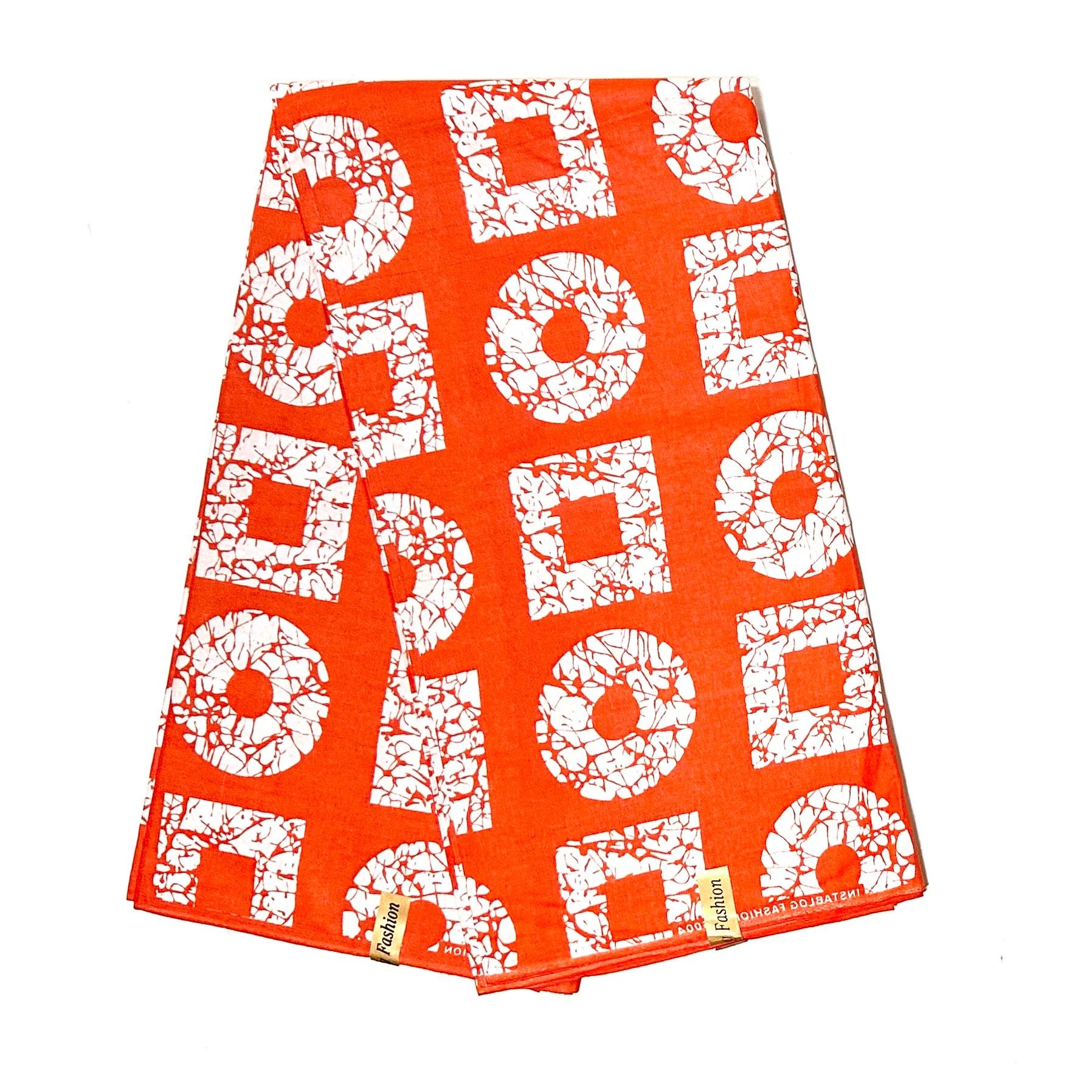 African Print Fabric/ Ankara - Orange, White 'Orun Balance’, YARD or WHOLESALE