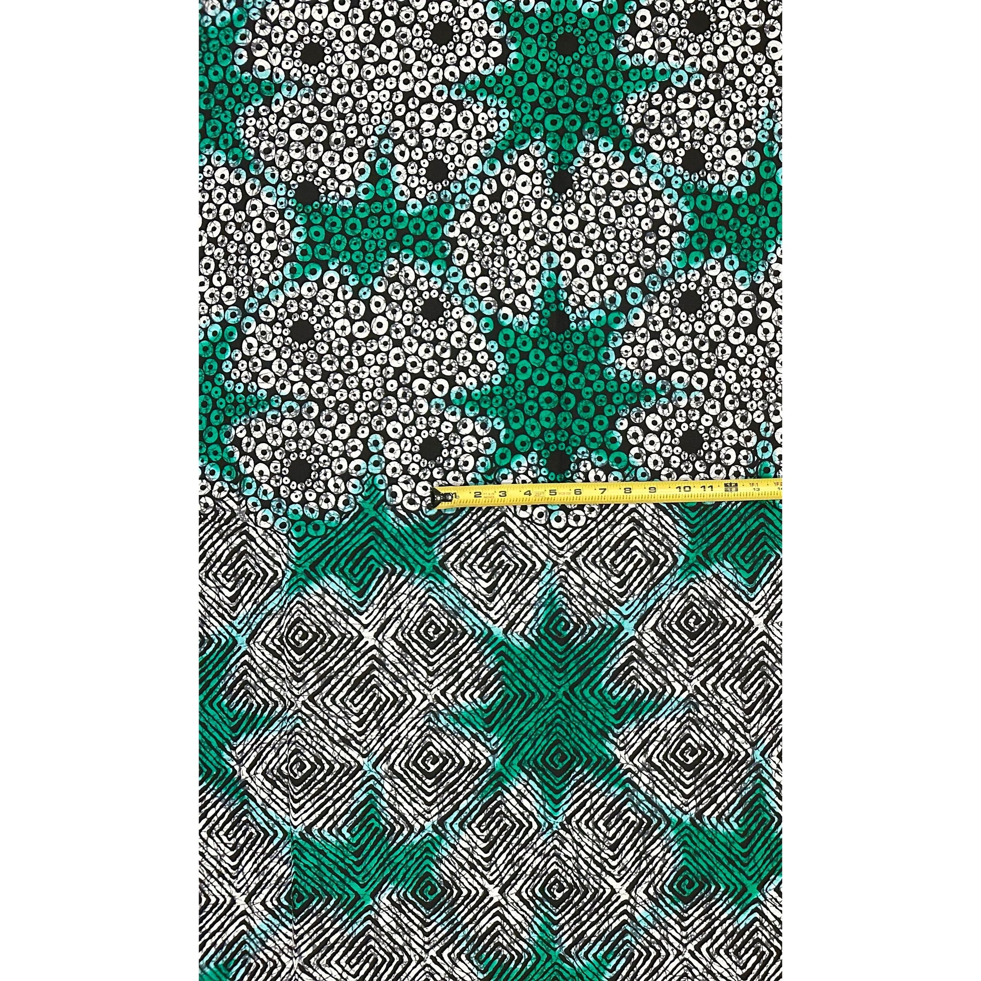 African Print Fabric/ Ankara - Green, Black, White 'Eye Dey Your Side' Design, YARD or WHOLESALE