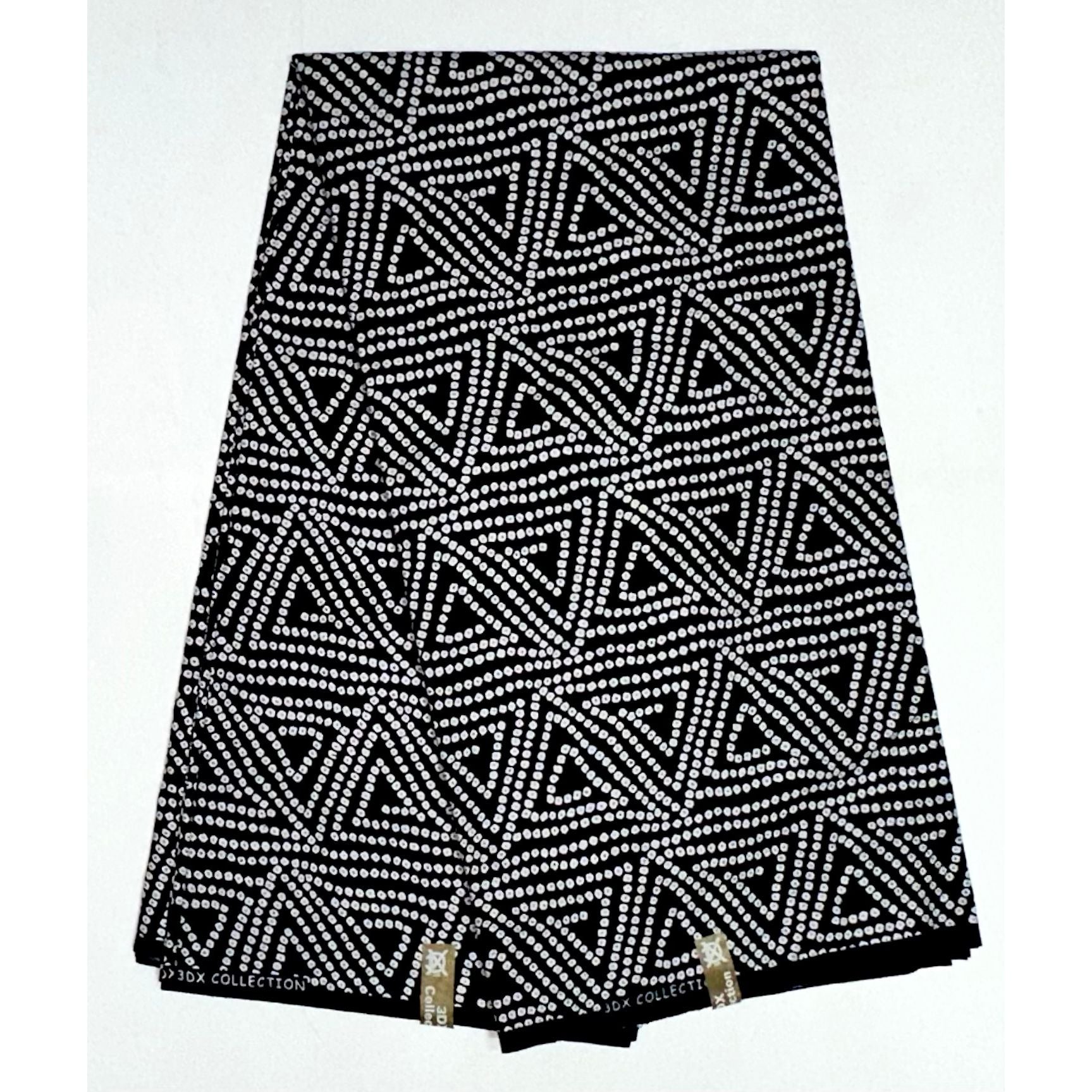 African Print Fabric/ Ankara - Black, White 'Tribal Matrix' Design, YARD or WHOLESALE