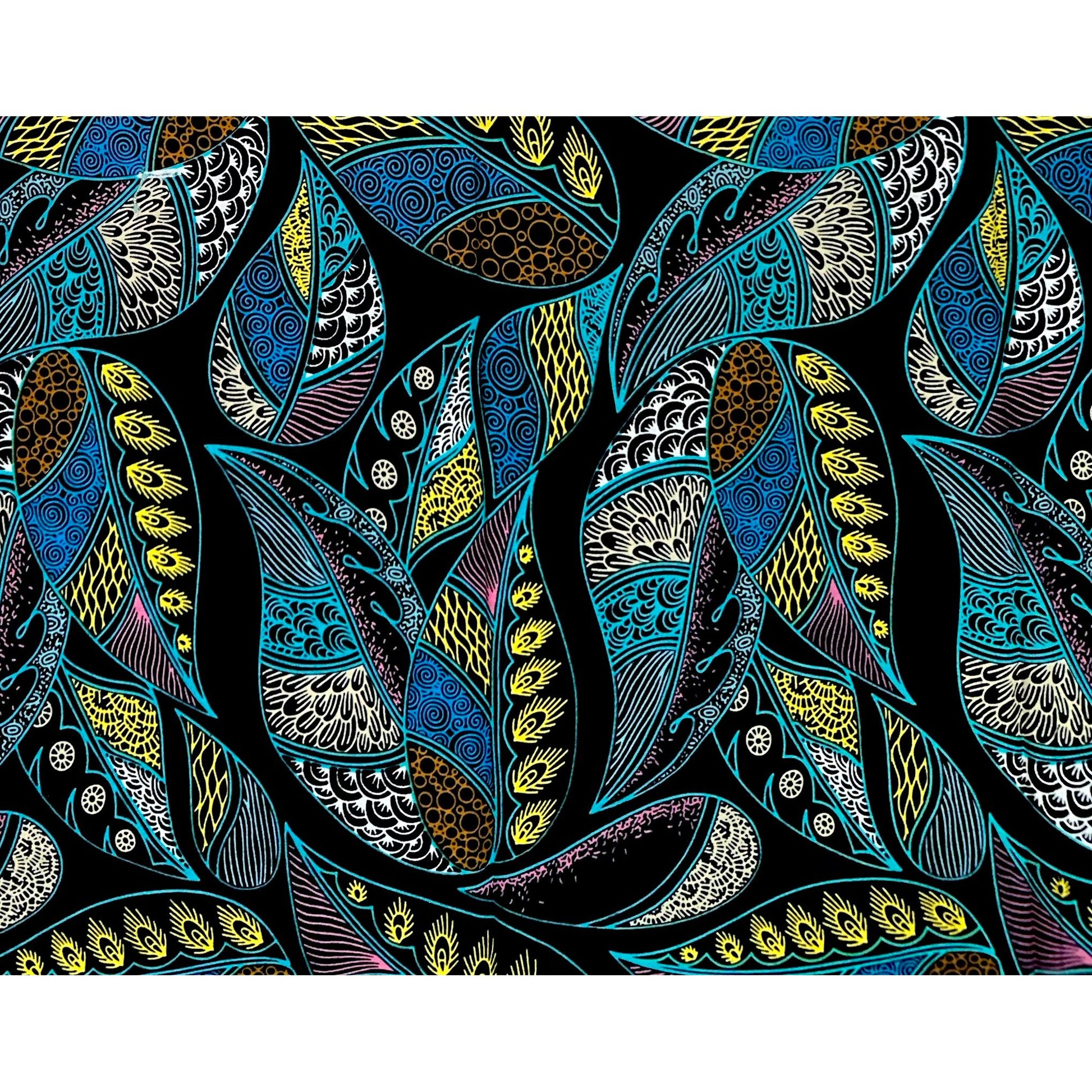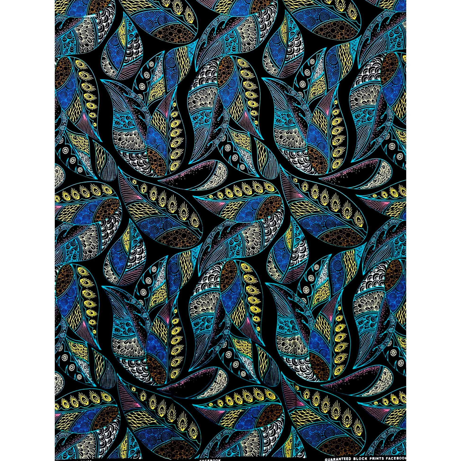 African Print Fabric/ Ankara - Blue, Black, Yellow, Pink 'Crown of Ayanfe' Design, YARD or WHOLESALE
