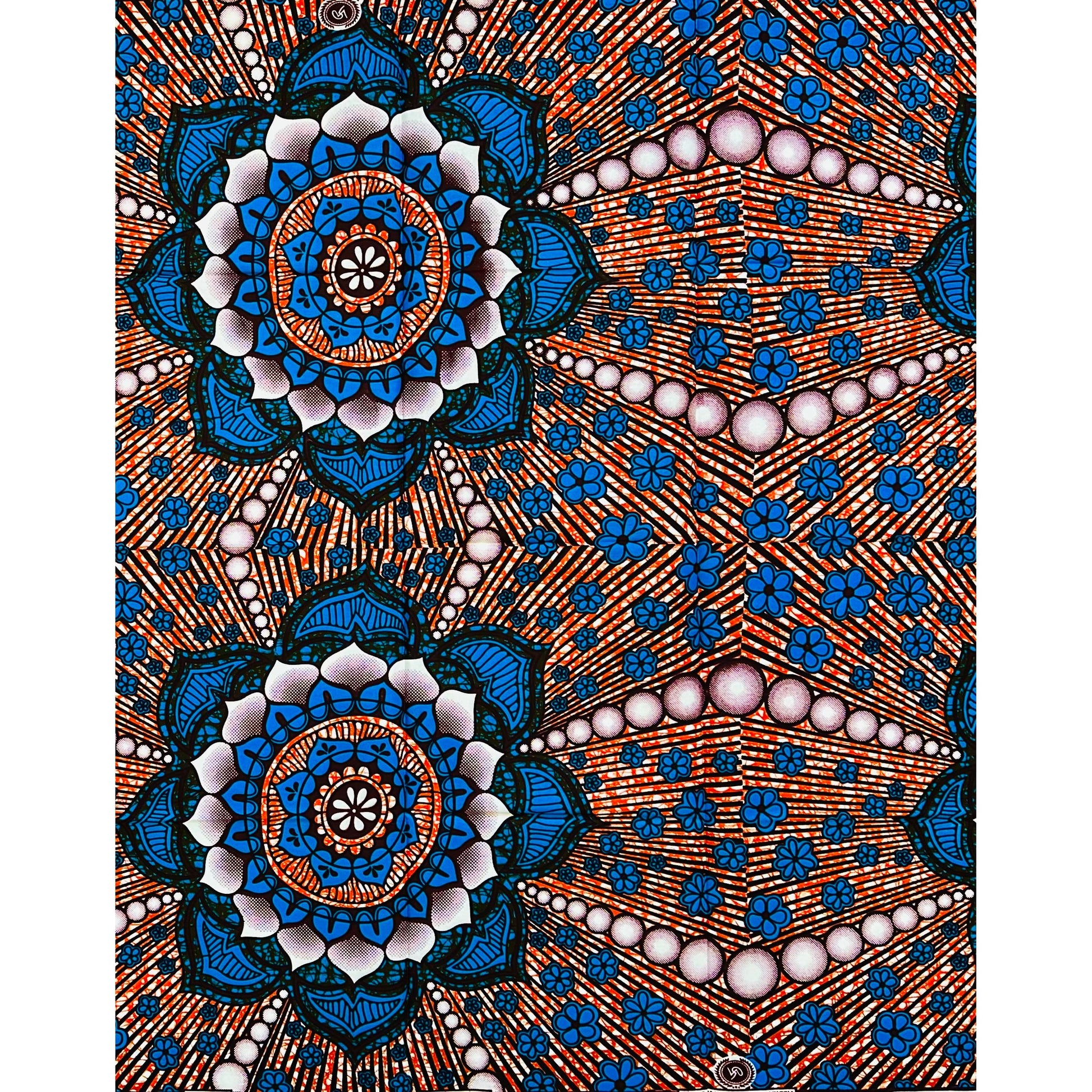 African Print Fabric/ Ankara - Blue, Sienna ‘Joy in Full Bloom' Design, 1 YARD