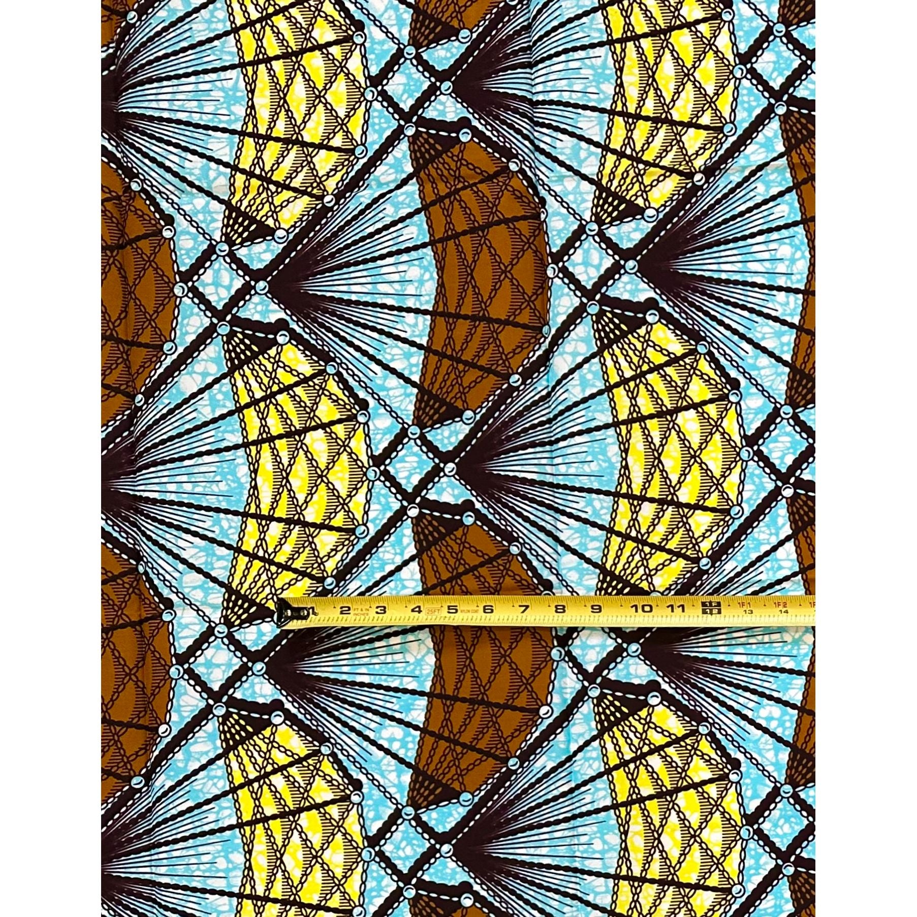 African Print Fabric/ Ankara - Blue, Brown, Yellow ‘Kọ́lé Path' Design, 1 YARD