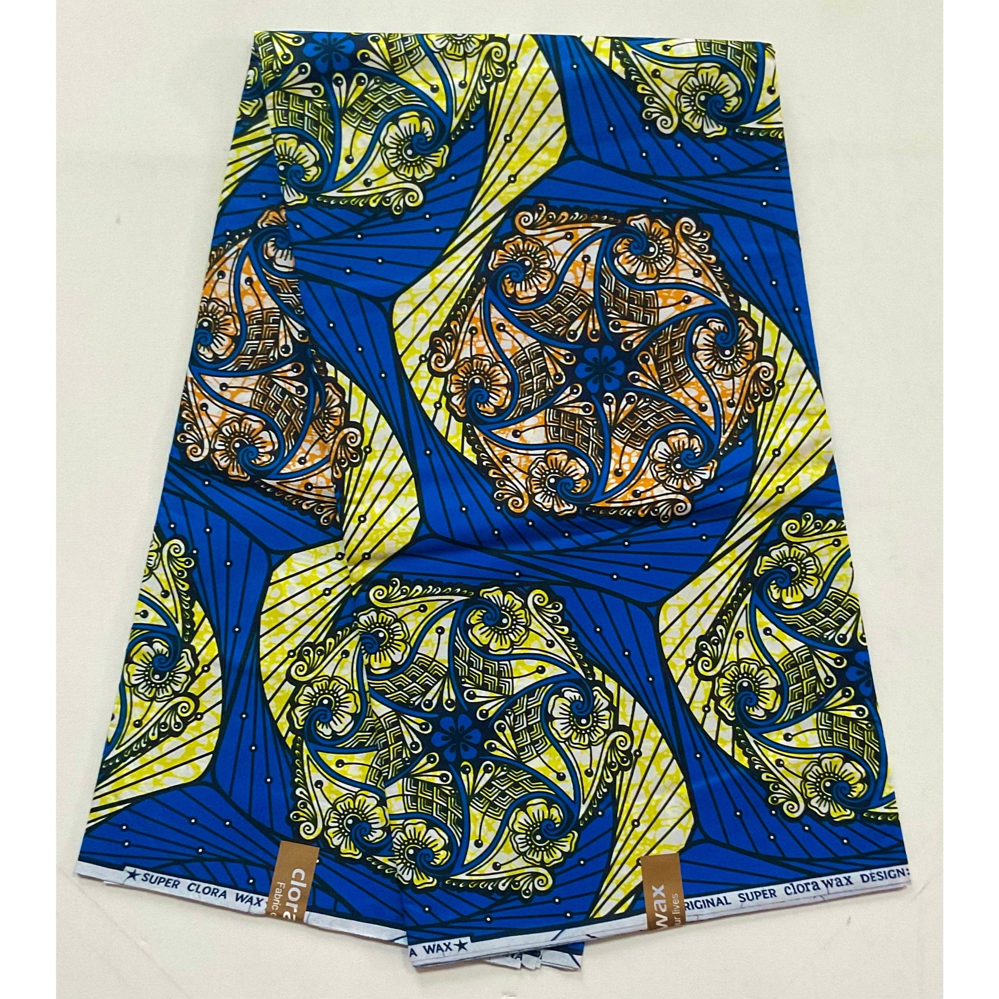 African Print Fabric/ Ankara - Blue, Orange, Yellow 'Macie', YARD or WHOLESALE