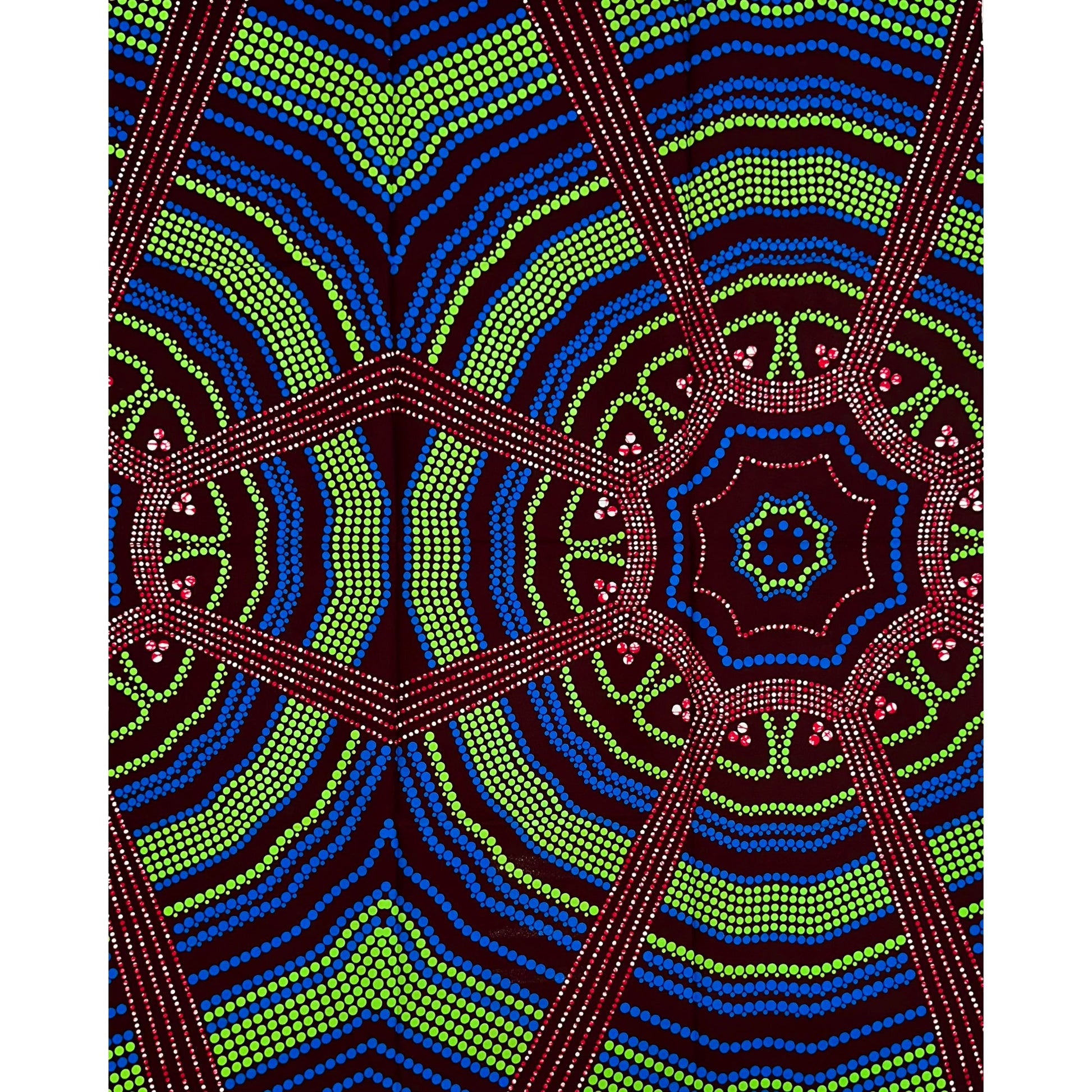 African Print Fabric/ Ankara - Blue, Red, Brown, Green ‘Orisa Pathways' Design, 1 YARD