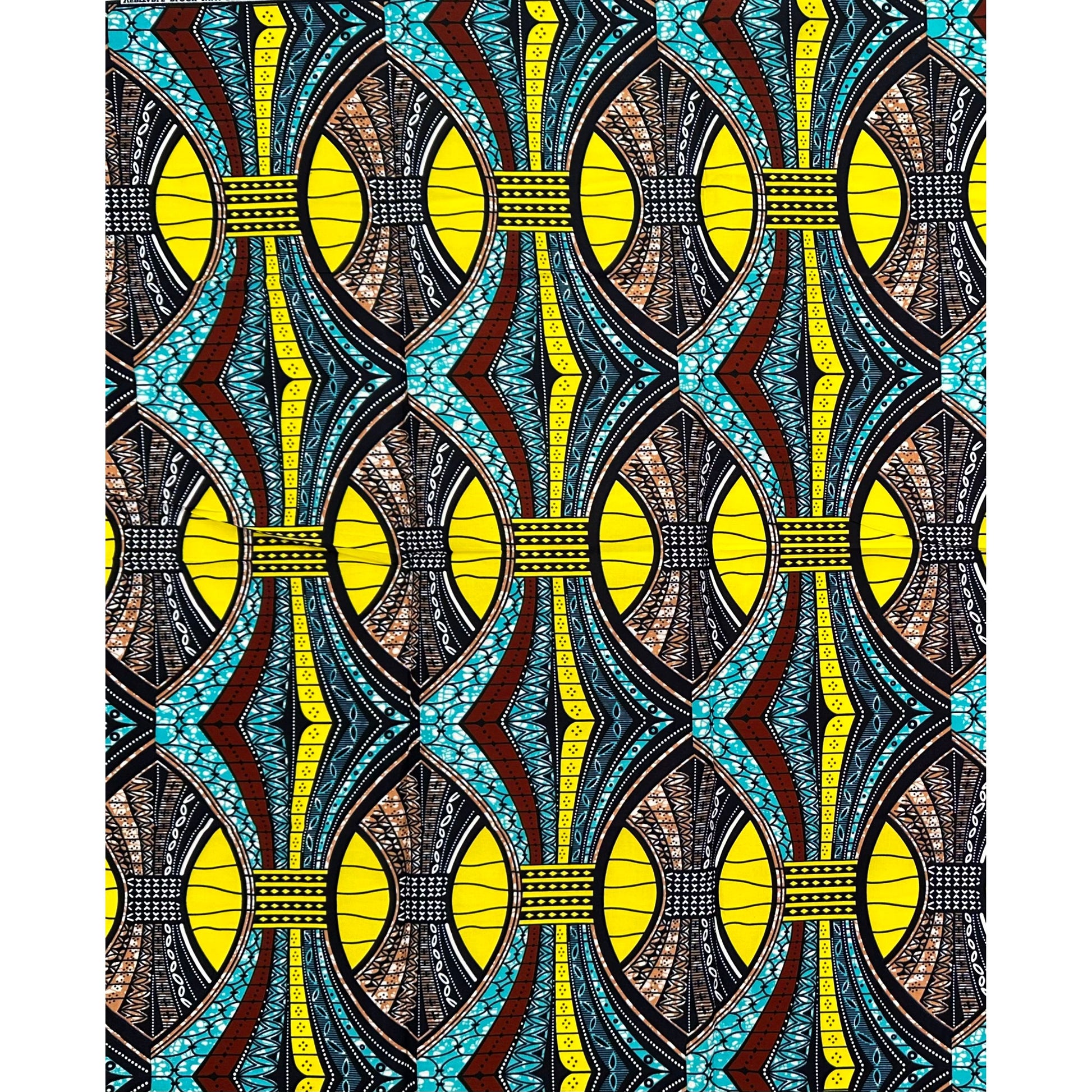 African Print Fabric/ Ankara - Blue, Yellow, Brown 'Built Different' Design