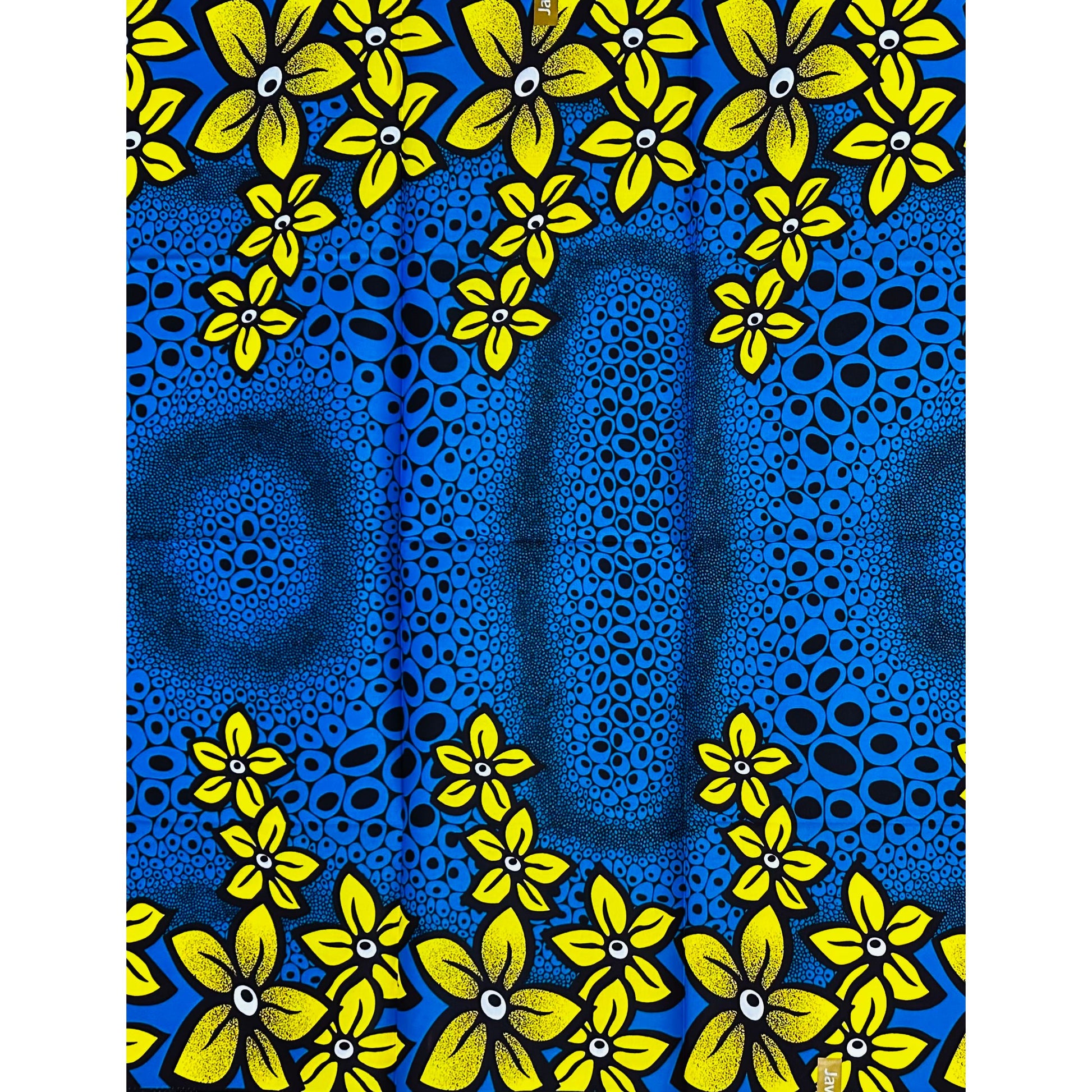 African Print Fabric/ Ankara - Blue, Yellow ‘Askia' Design, 1 YARD