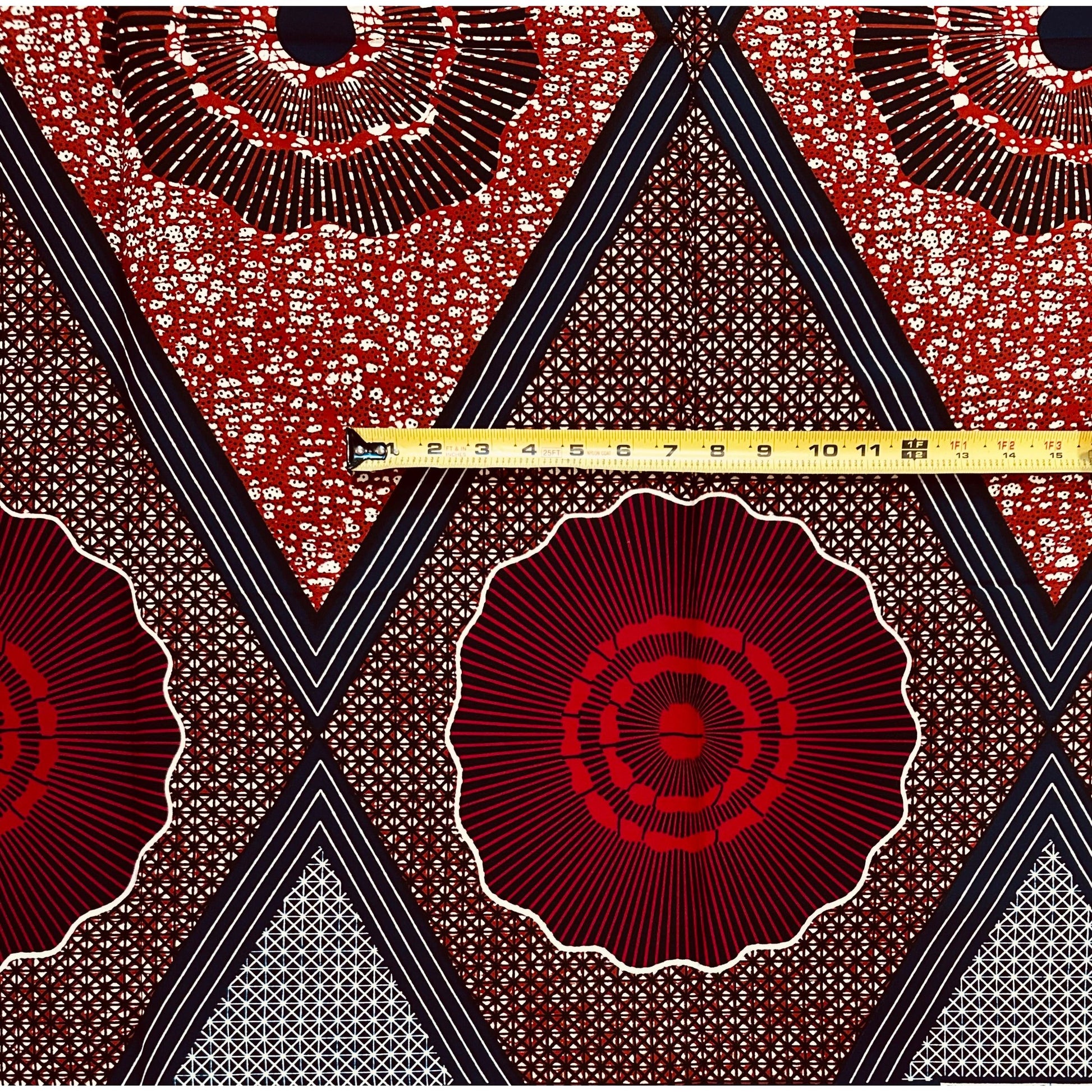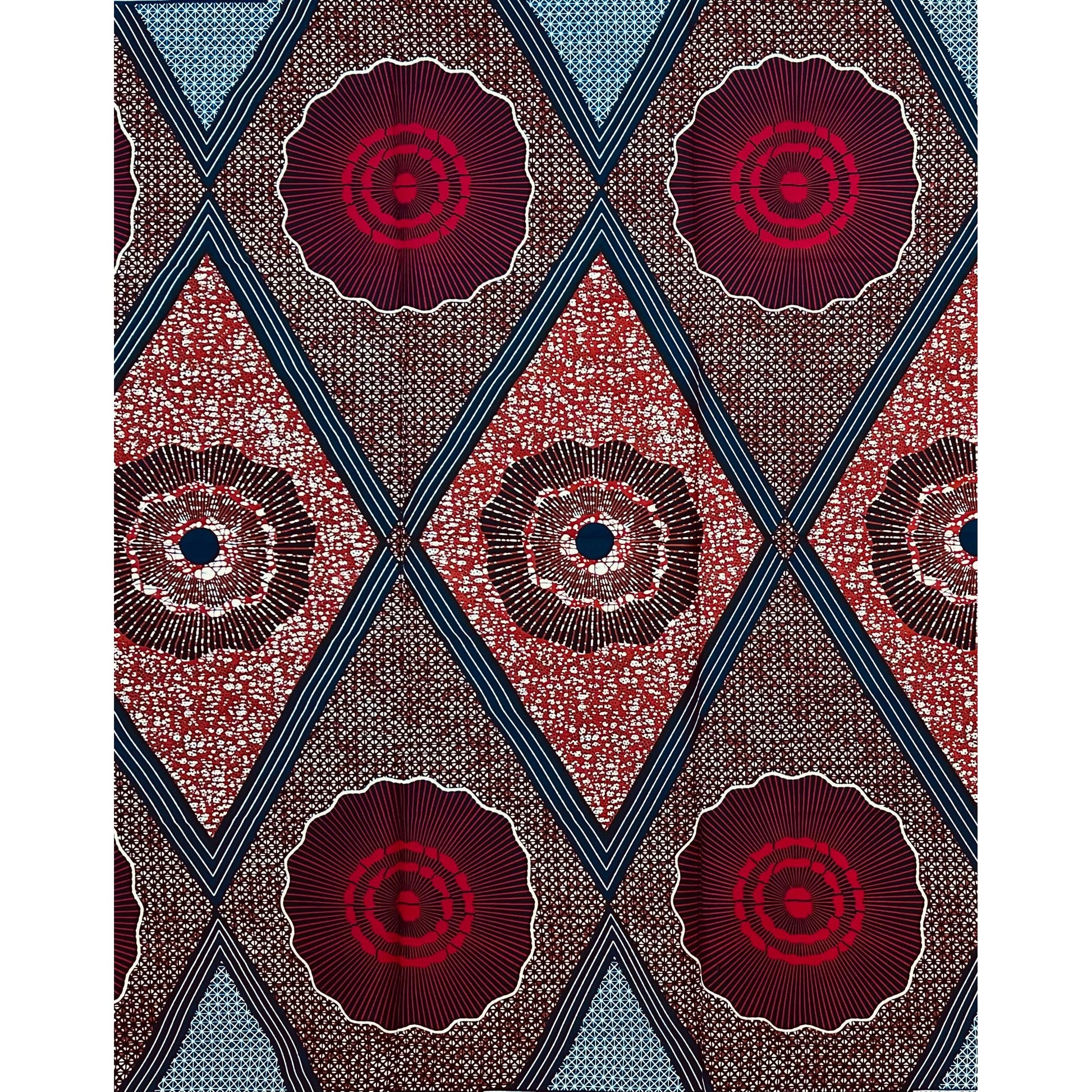 African Print Fabric/ Ankara - Brown, Blue, Red 'Afia Enum,' YARD