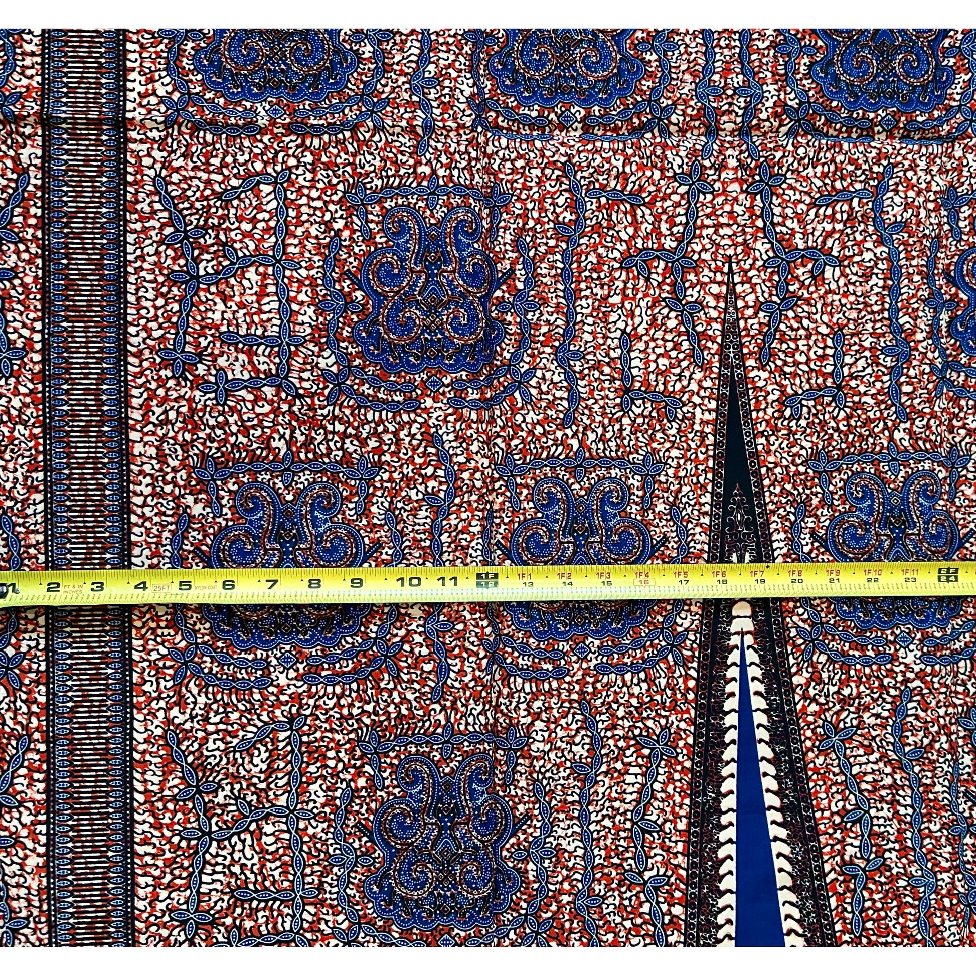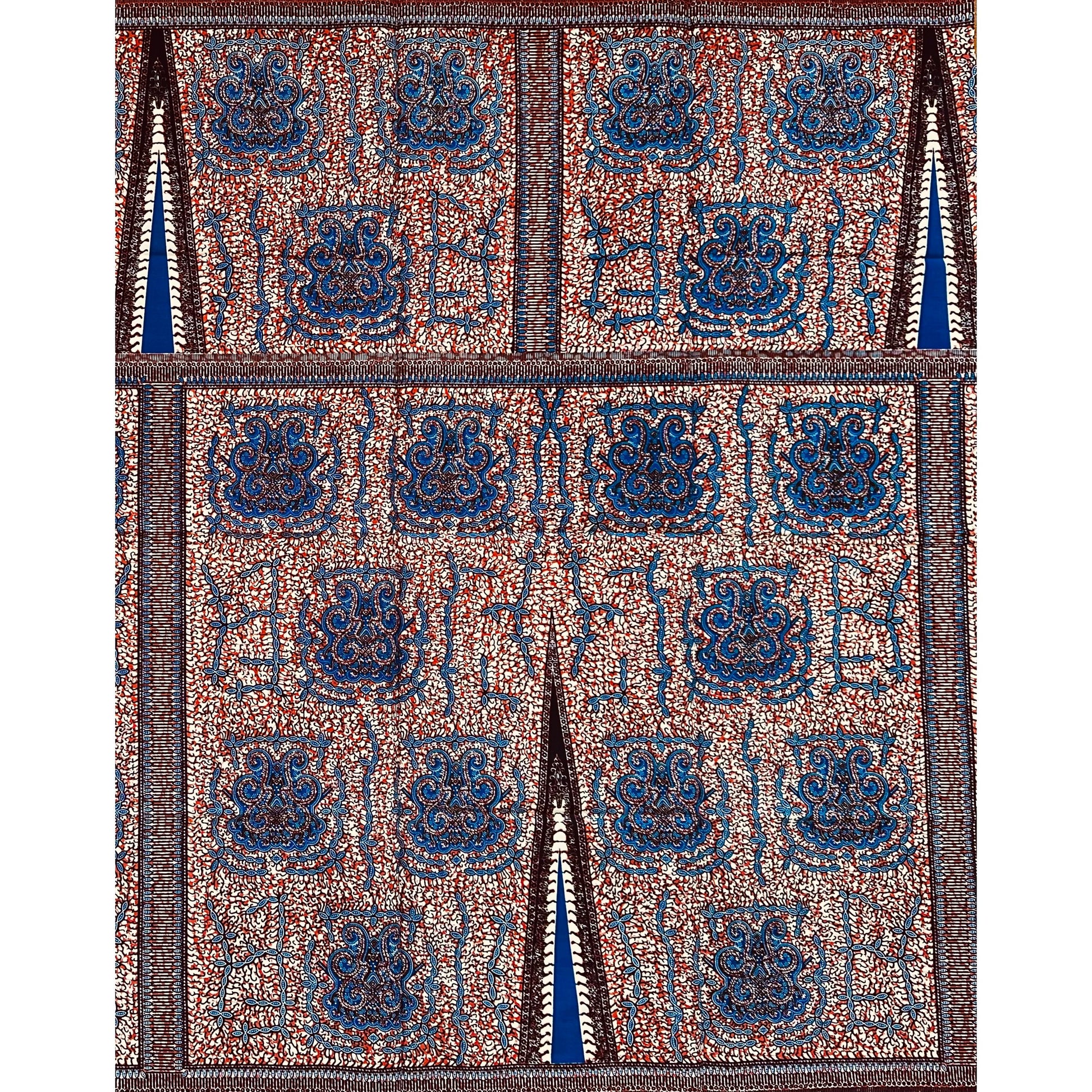 African Print Fabric/ Ankara - Brown, Blue 'Afia Umari,' YARD
