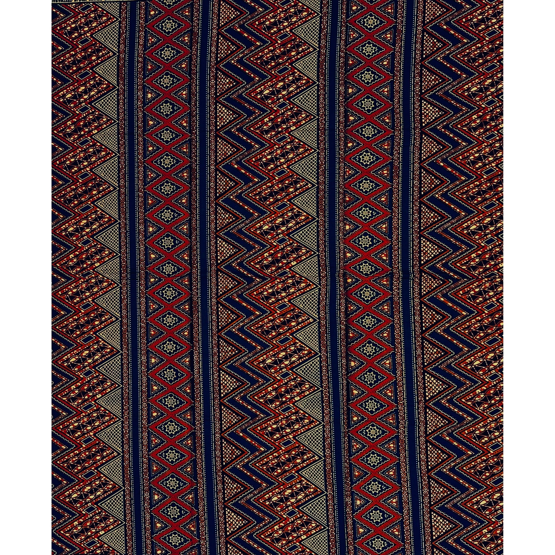 African Print Fabric/ Ankara - Brown, Navy "Zigzag Palava", 1 Yard