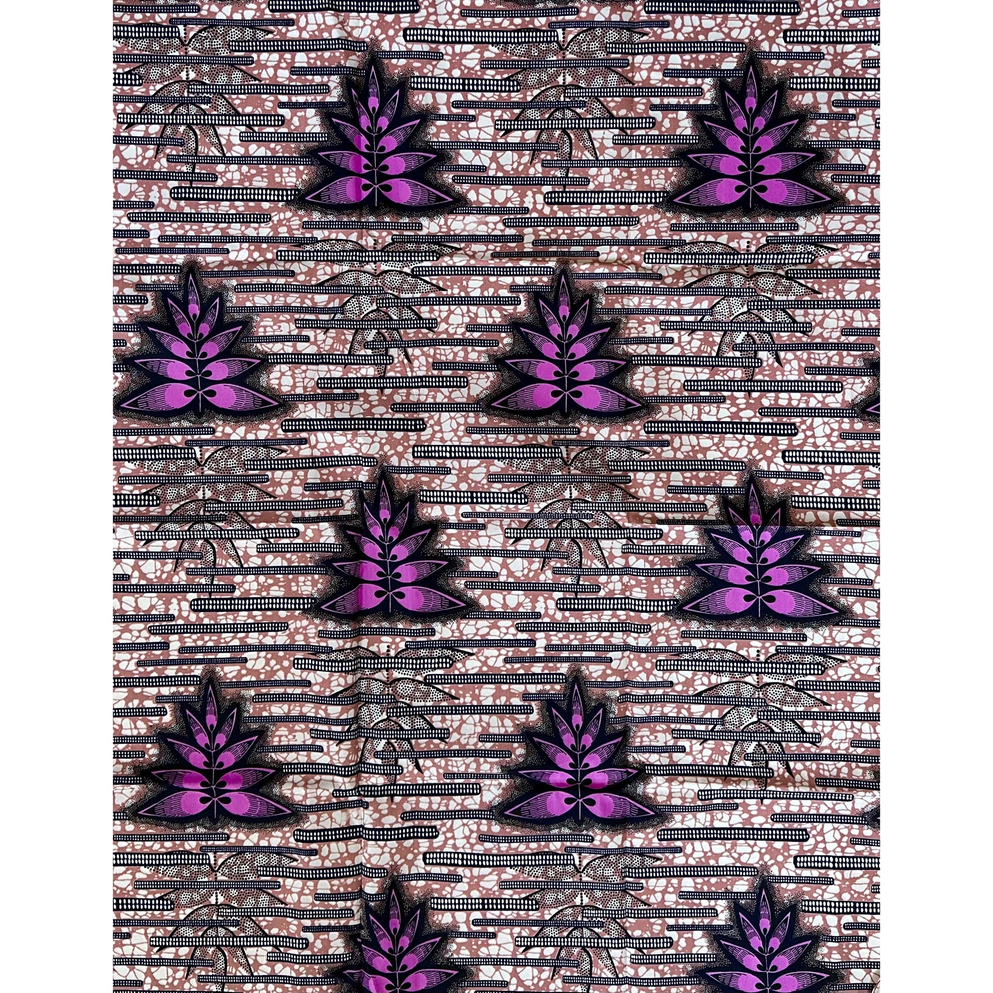 African Print Fabric/ Ankara - Brown, Purple, Navy 'Striped Lantana', ~1 YARD