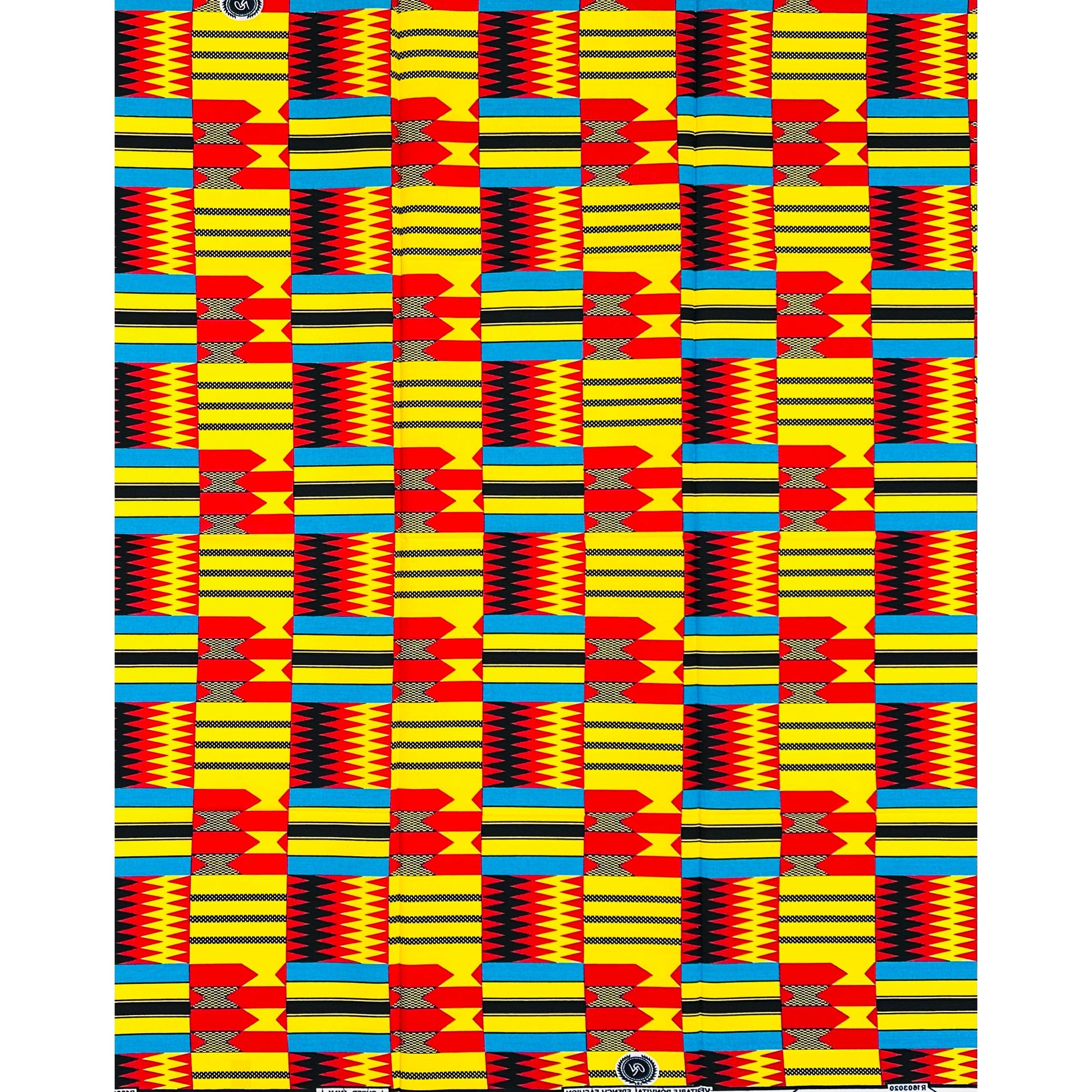 African Print Fabric/Ankara - Red, Yellow, Blue "Asanteman Grid" Kente, 1 Yard