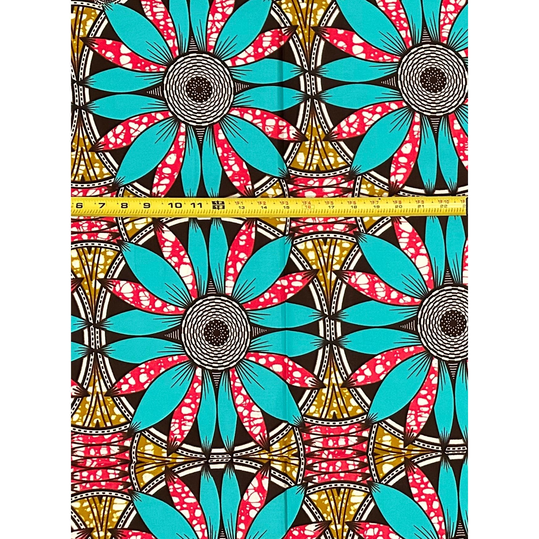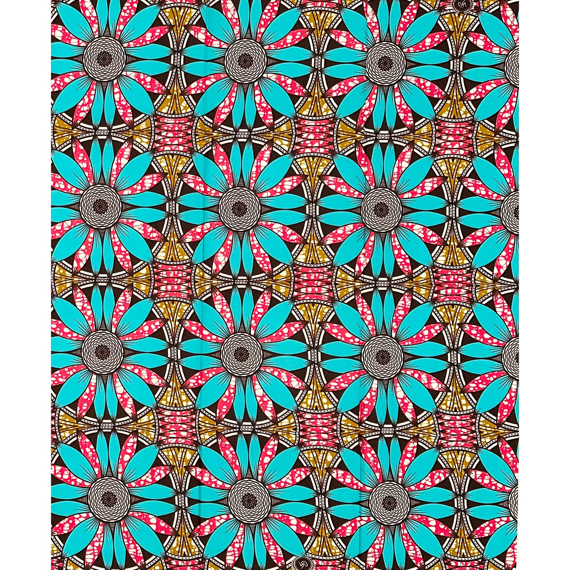 African Print Fabric/ Ankara - Blue, Brown, Pink ‘Kinetic Flower ' Design, 1 YARD