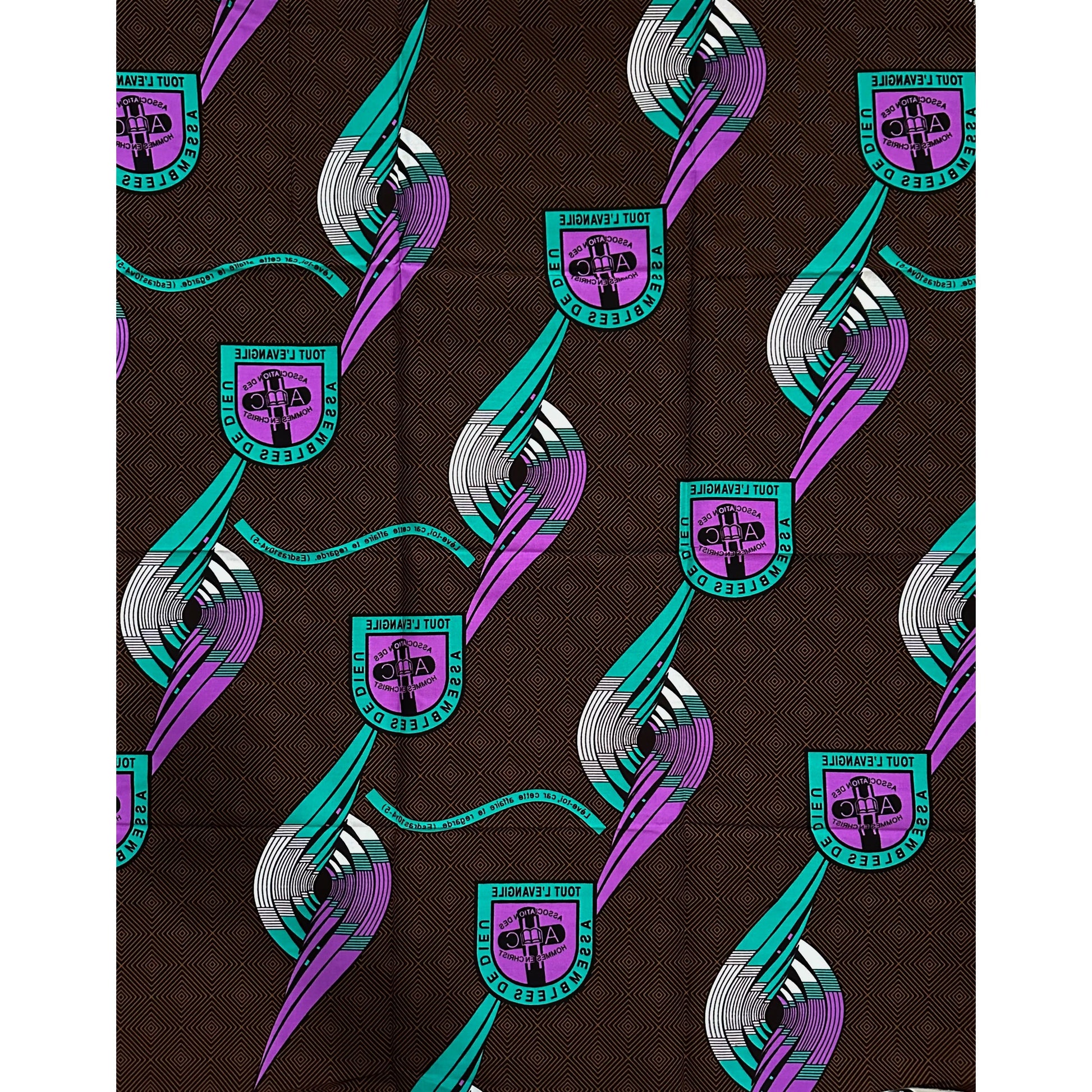 African Print Fabric/Ankara - Brown, Teal, Purple "Tout L’Evangile" Design