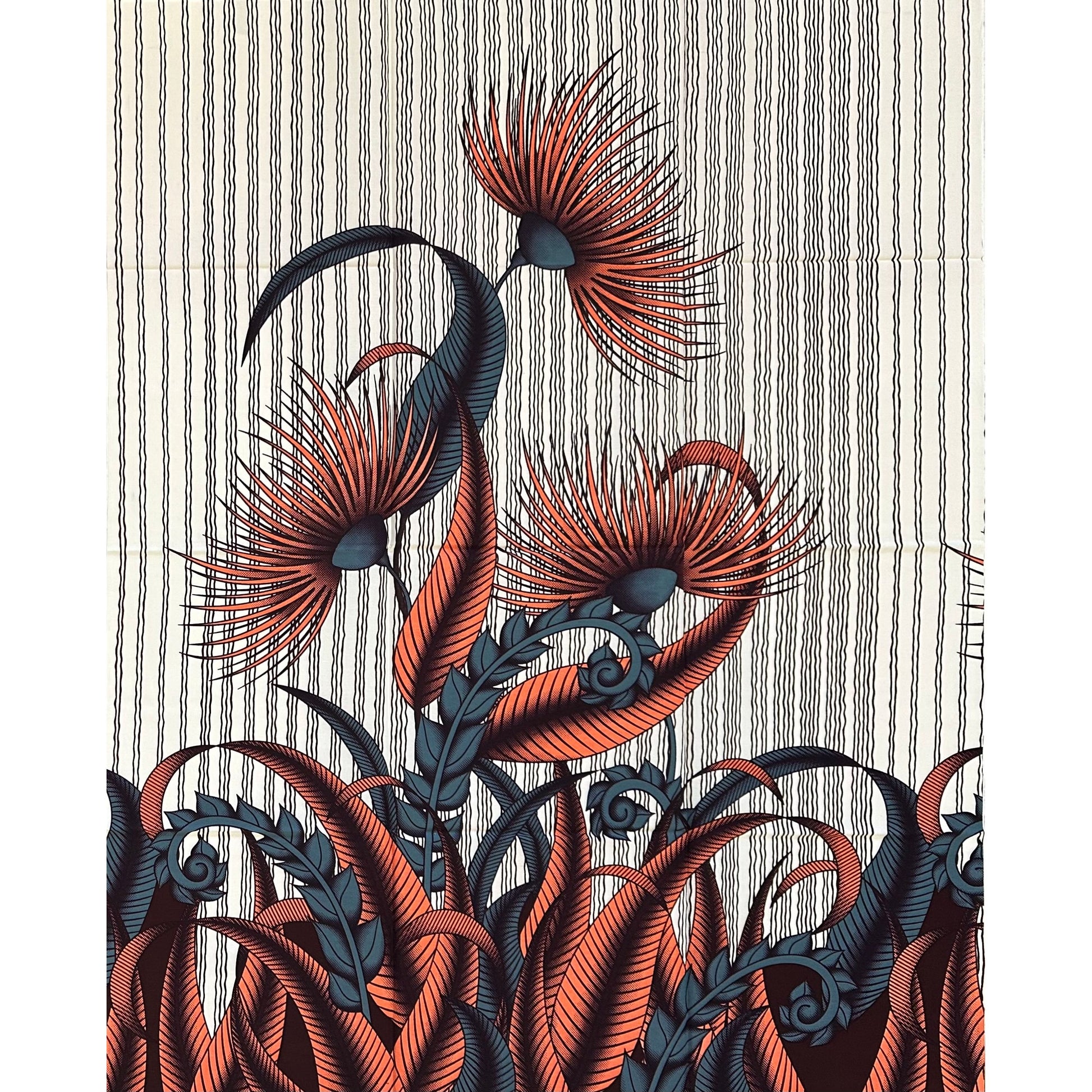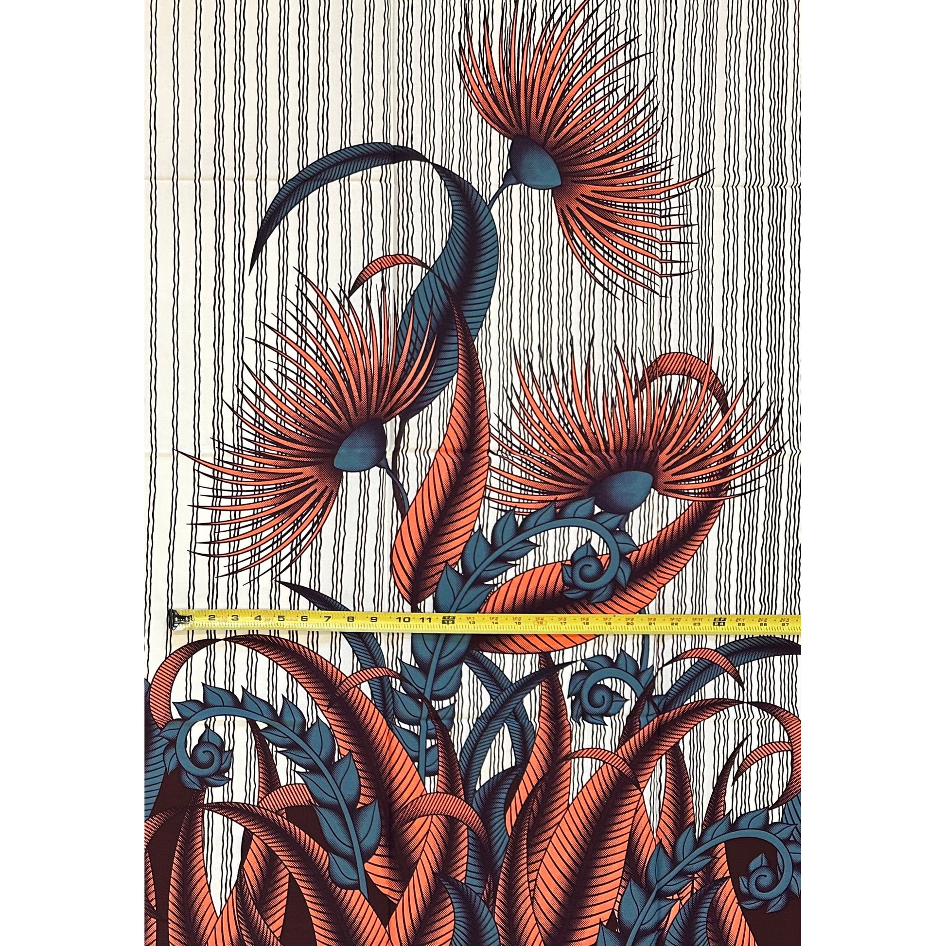 African Print Fabric/ Ankara - Beige, Coral, Gray, Brown ‘Botanical Thesis' Design, 1 YARD