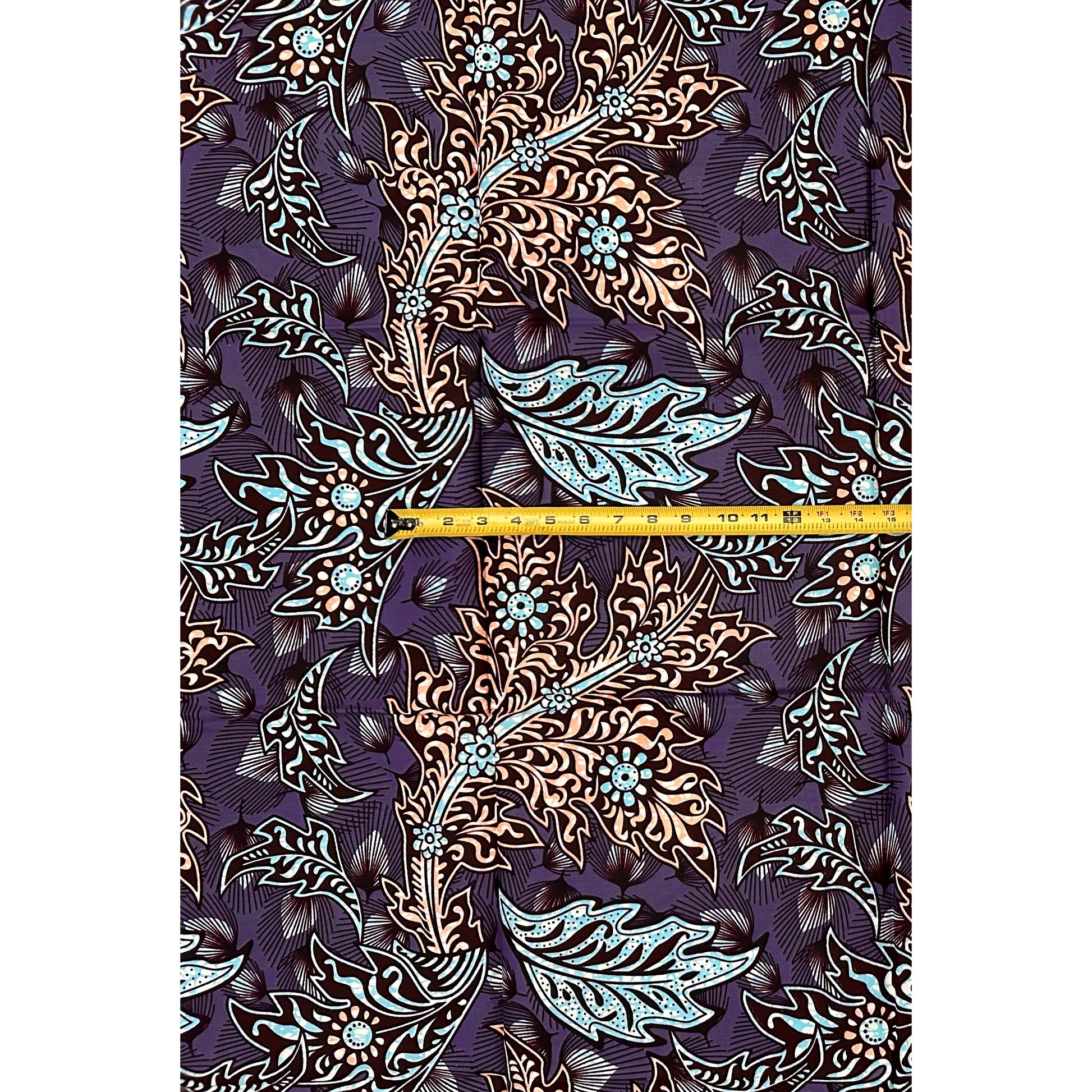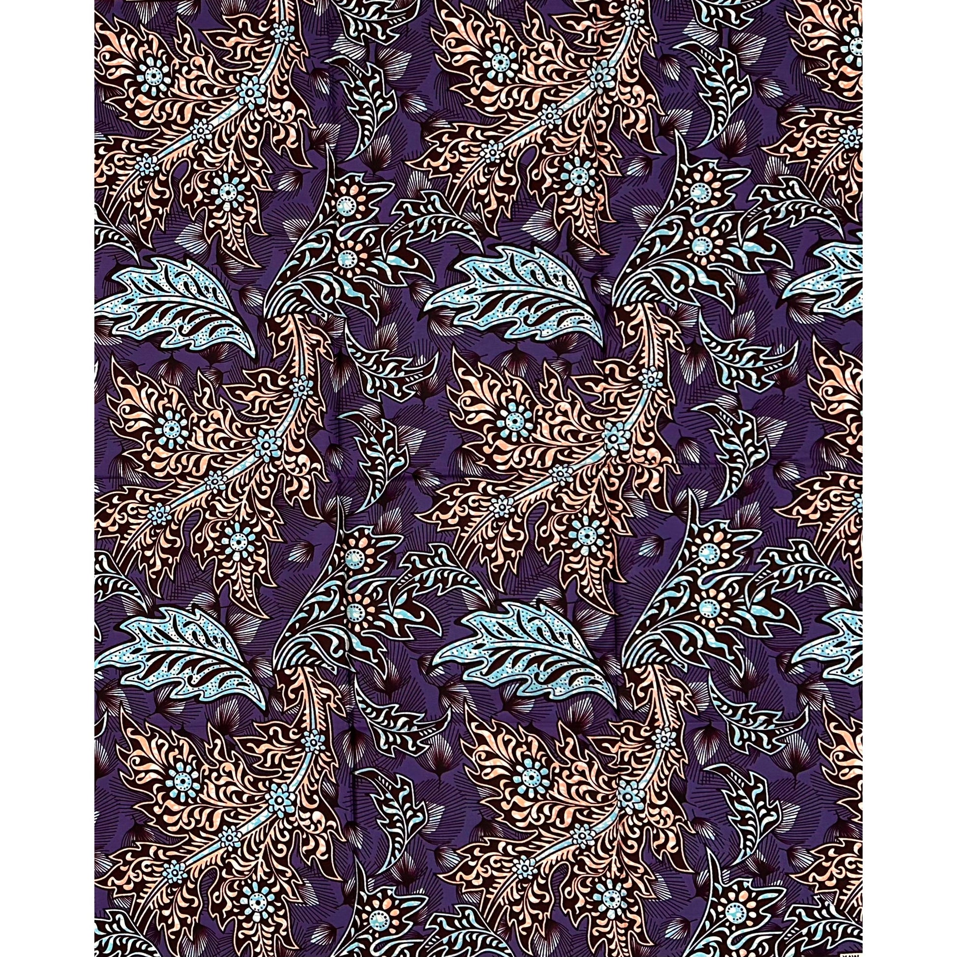 African Print Fabric/ Ankara - Gray, Blue, Brown 'Leafy Driftvine,’ 1 YARD