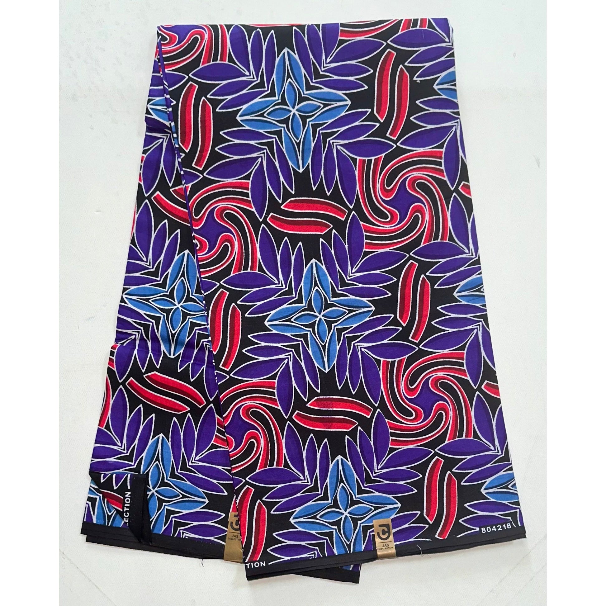 African Print Fabric/ Ankara - Blue, Purple, Shades of Red 'Nyoka Petals' Design, YARD or WHOLESALE