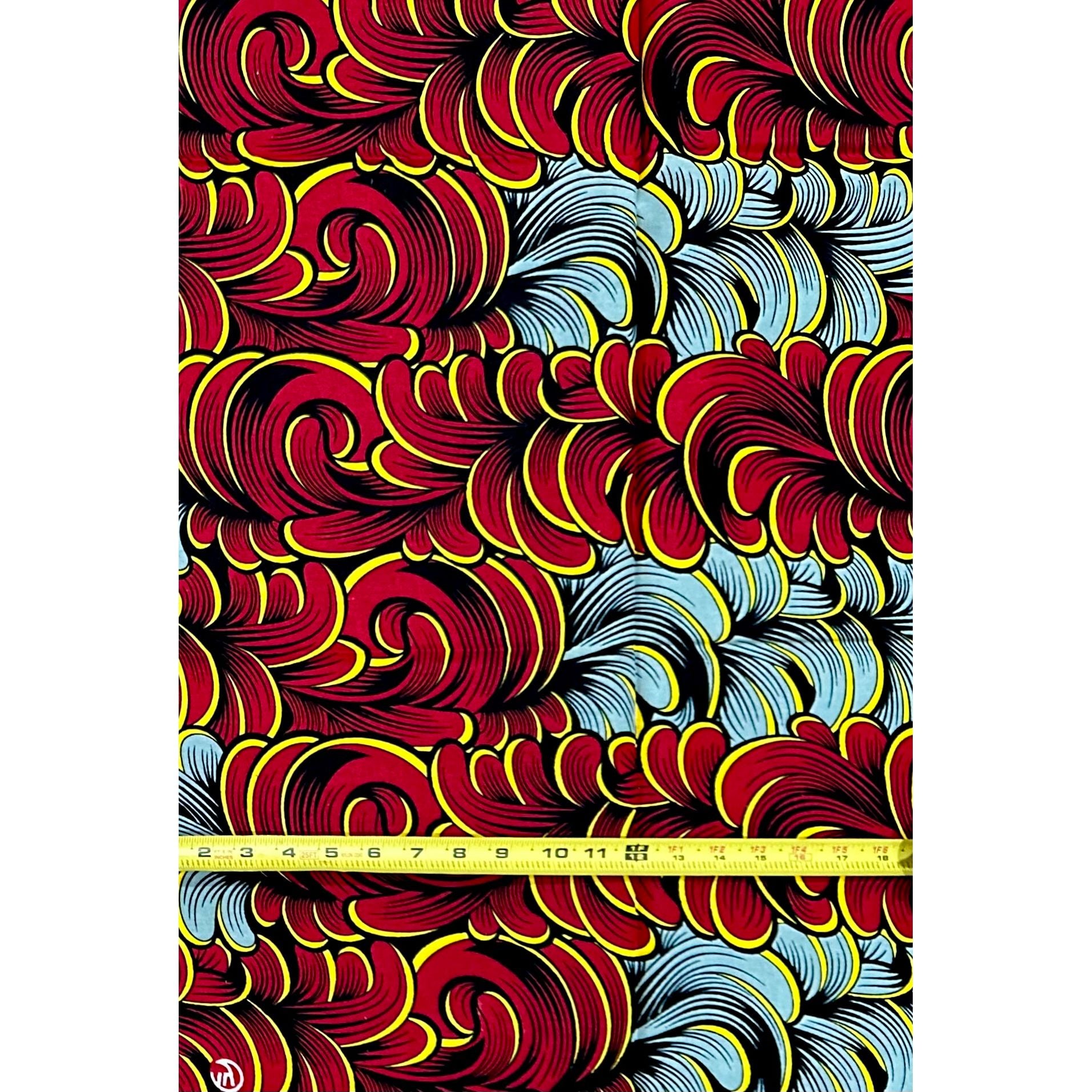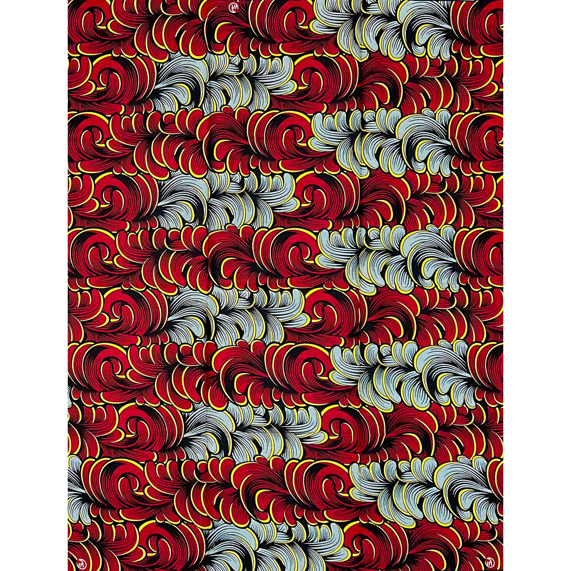 African Print Fabric/Ankara - Gray, Red, Yellow "Ina Royale" Design, 1 Yard