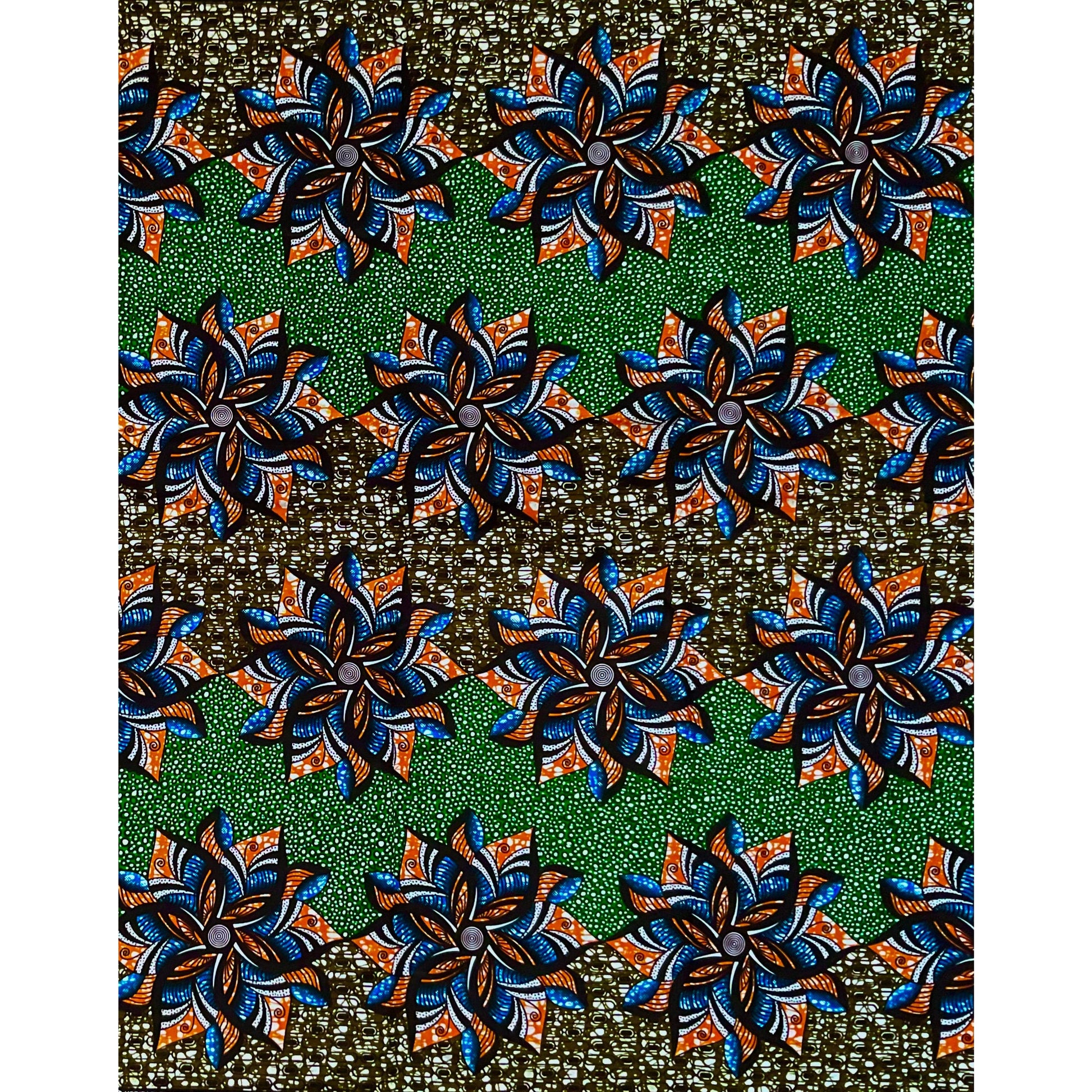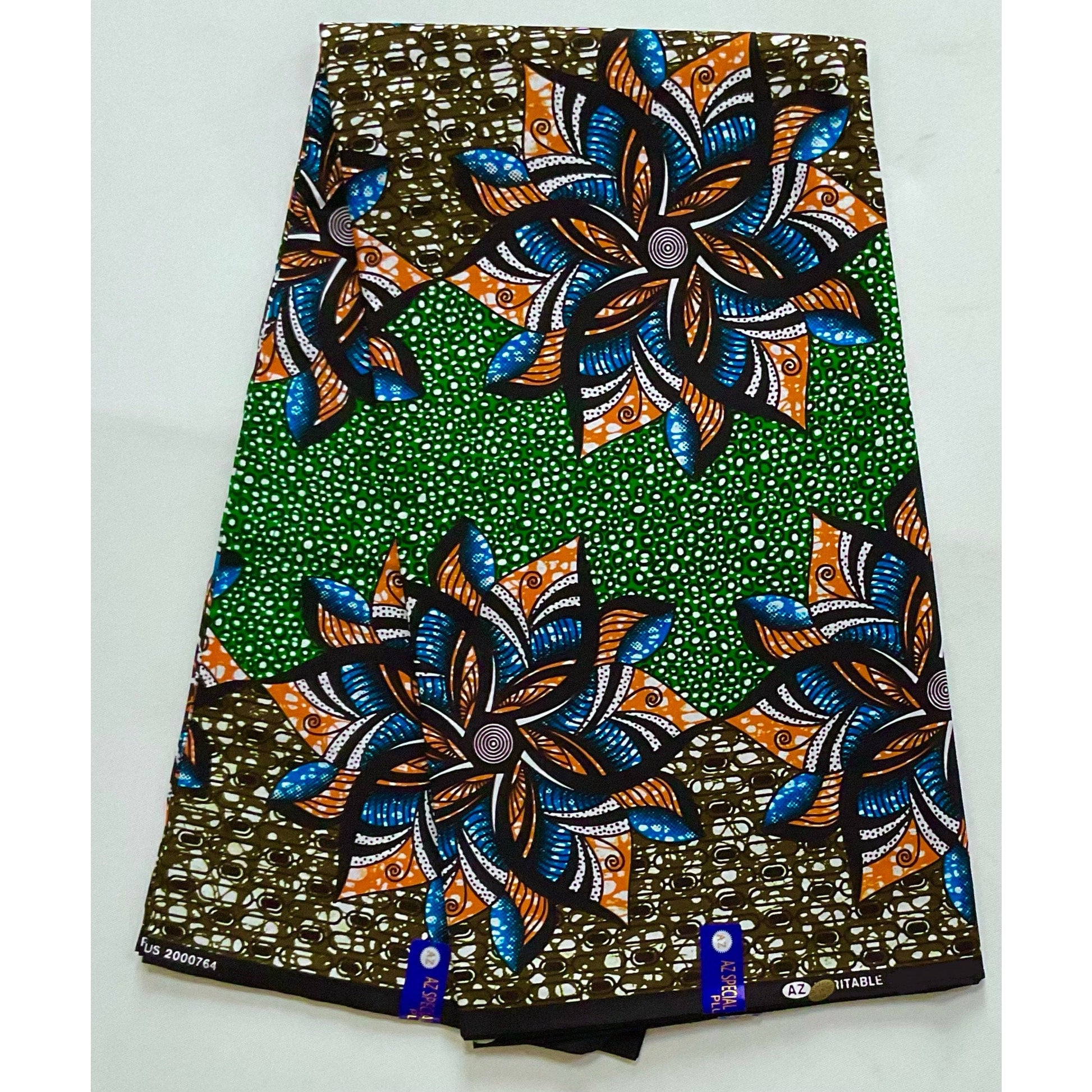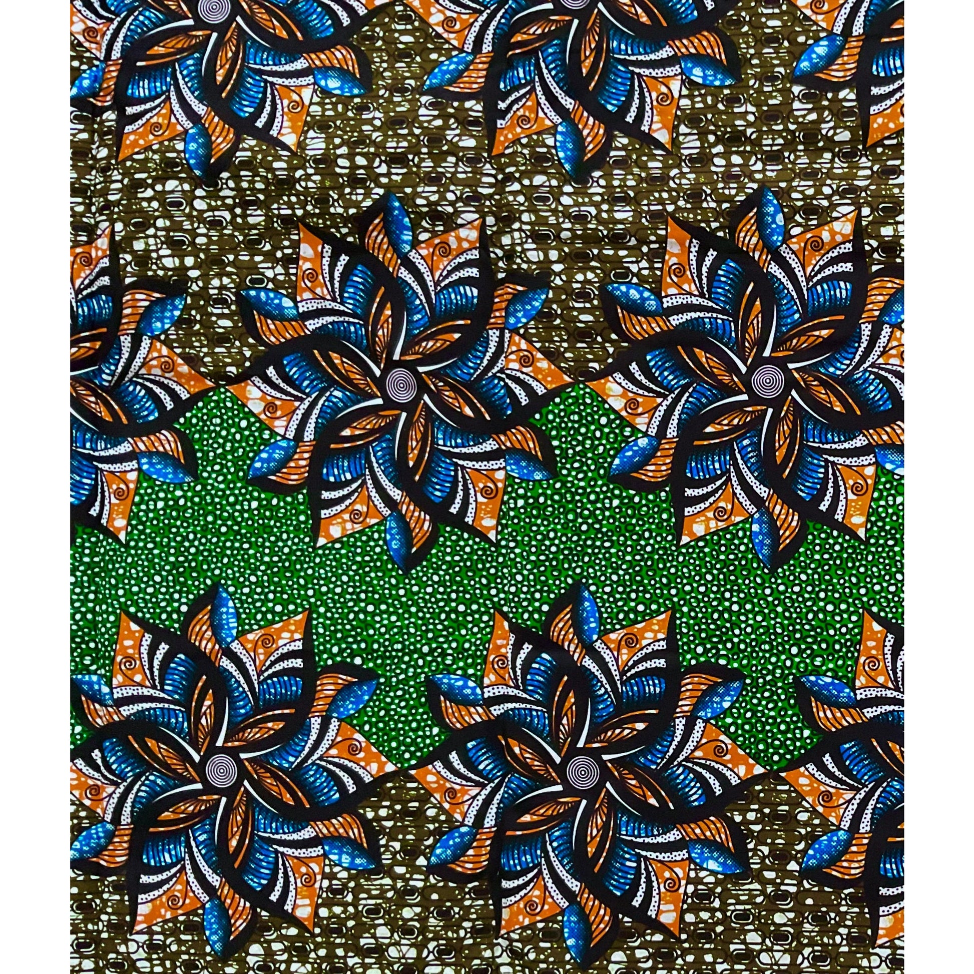 African Print Fabric/ Ankara - Green, Blue, Orange, Brown 'Jasiri Bandeau' Design, YARD or WHOLESALE