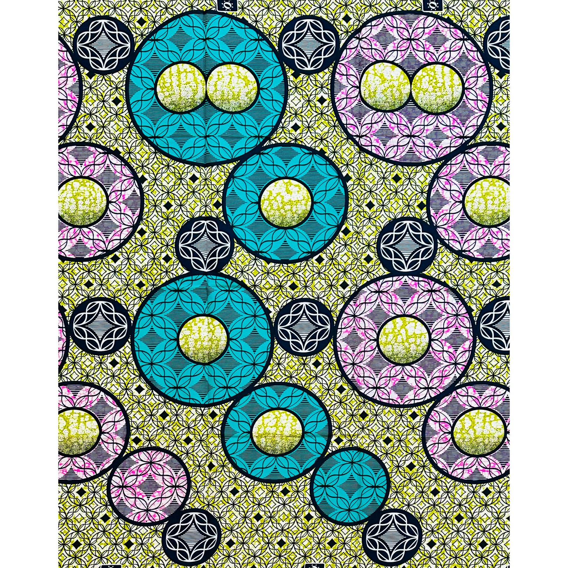 African Print Fabric/ Ankara - Green, Teal, Pink 'Life in Circles', YARD or WHOLESALE