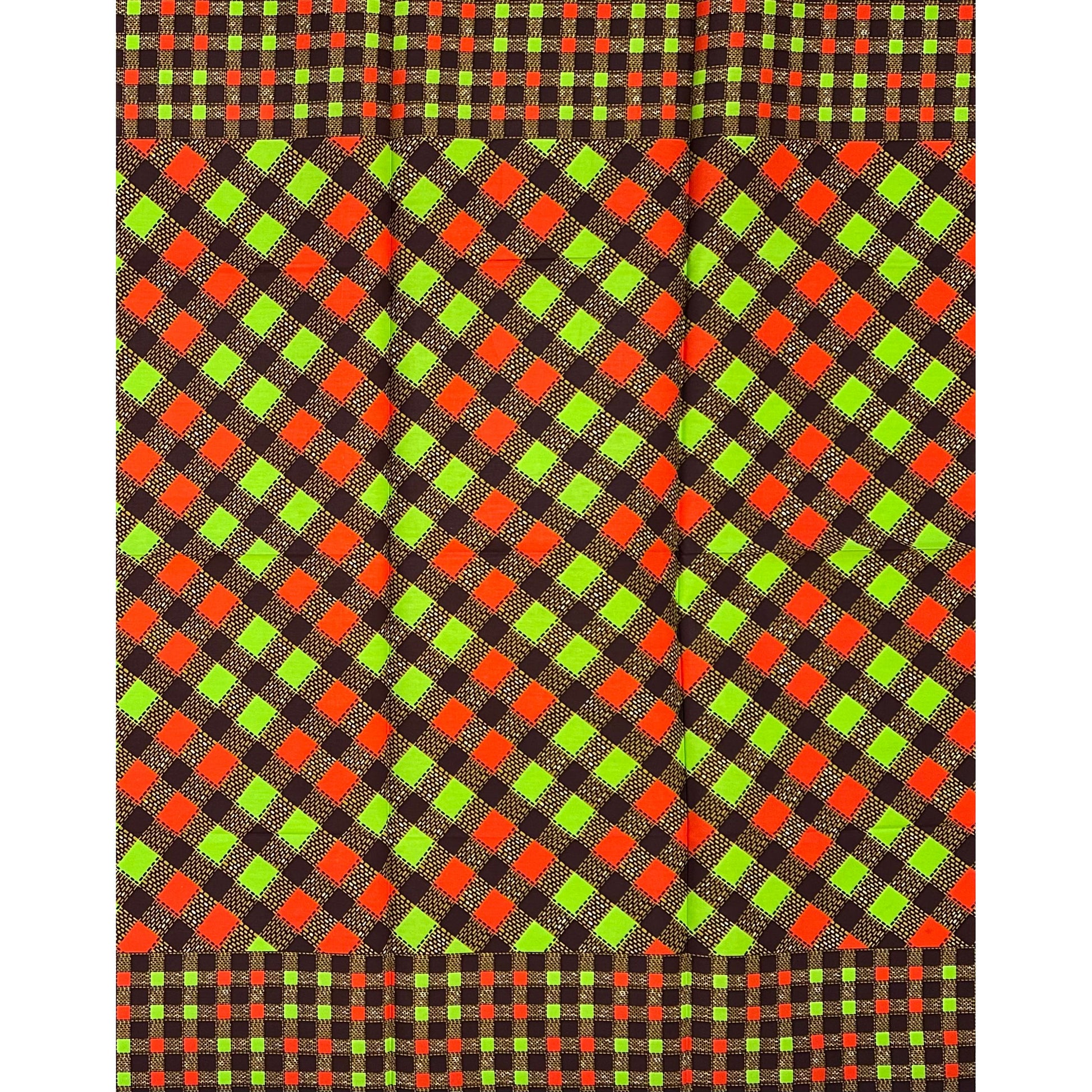 African Print Fabric/ Ankara - Green, Orange, Brown ‘Market After Five' Design, 1 YARD