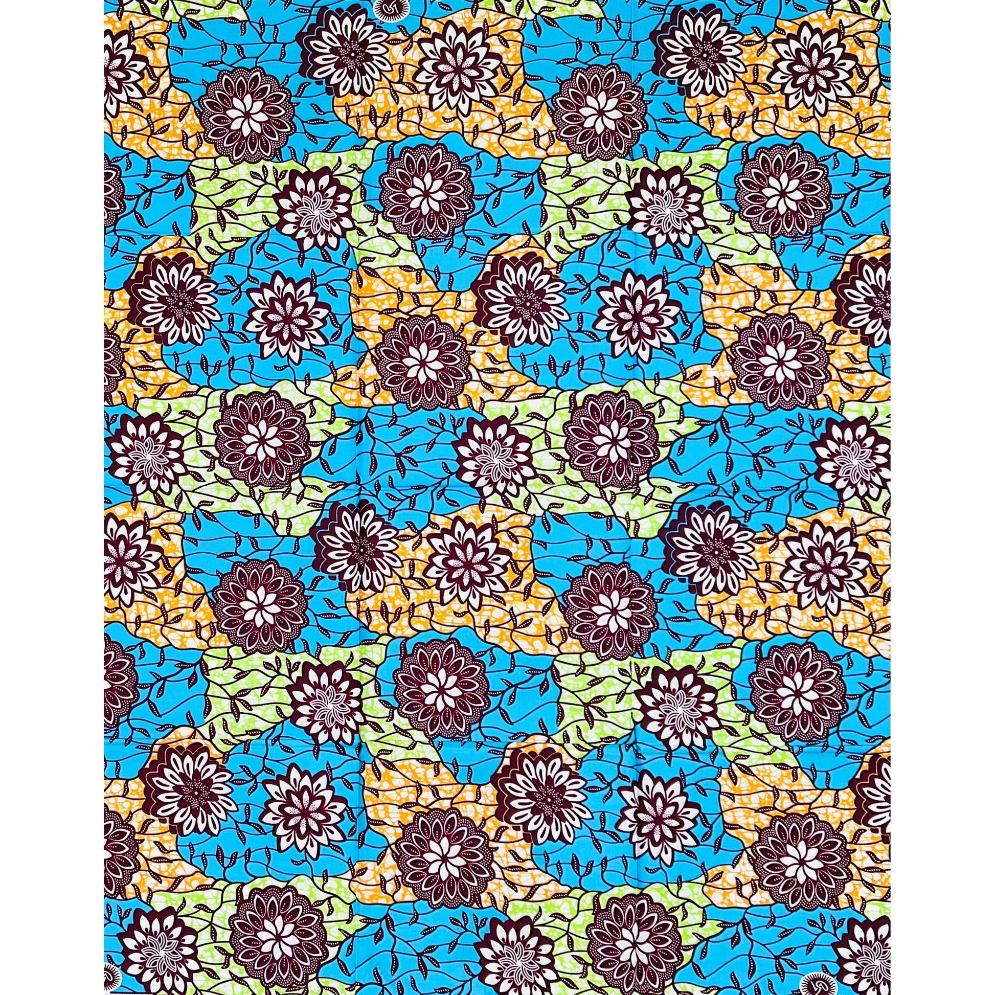 African Print Fabric/ Ankara - Blue, Green, Orange, Brown ‘Mbali Bloom' Design, 1 YARD