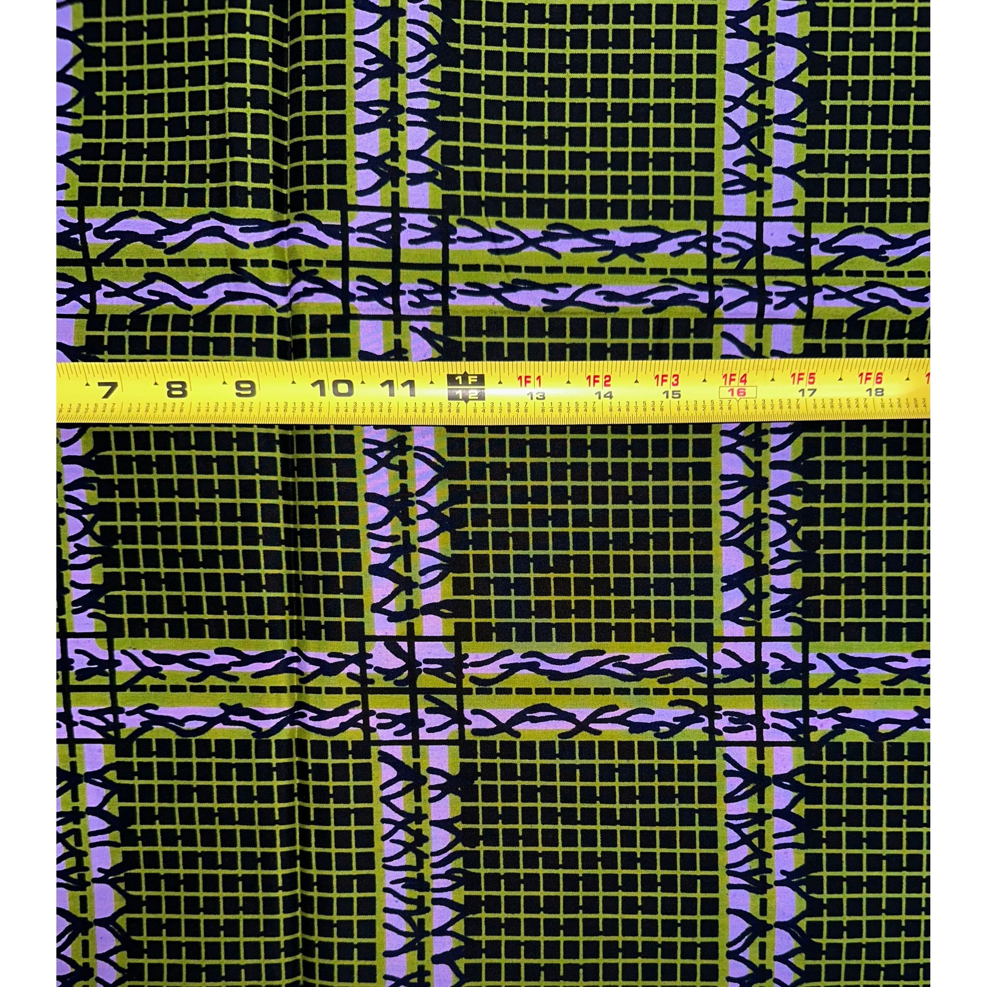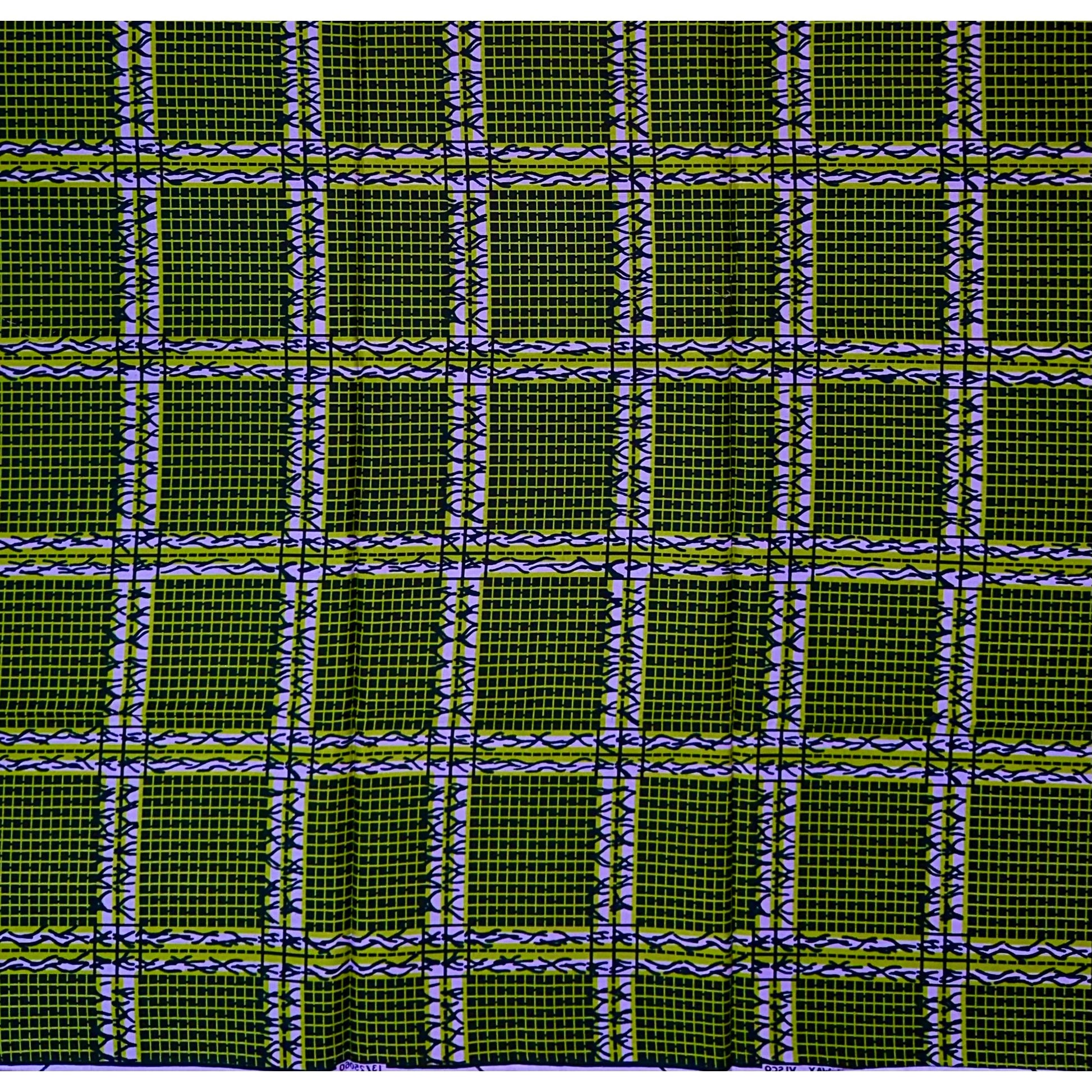 African Print Fabric/ Ankara - Green, Purple 'Ola Grid' Design, YARD