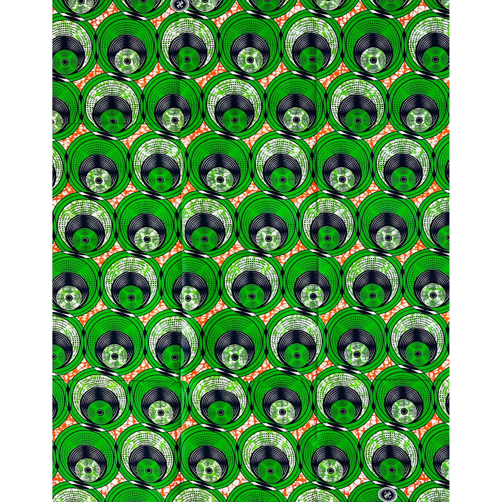 African Print Fabric/ Ankara - Green, Orange 'Ayé Rhythm Circles,’ 1 YARD