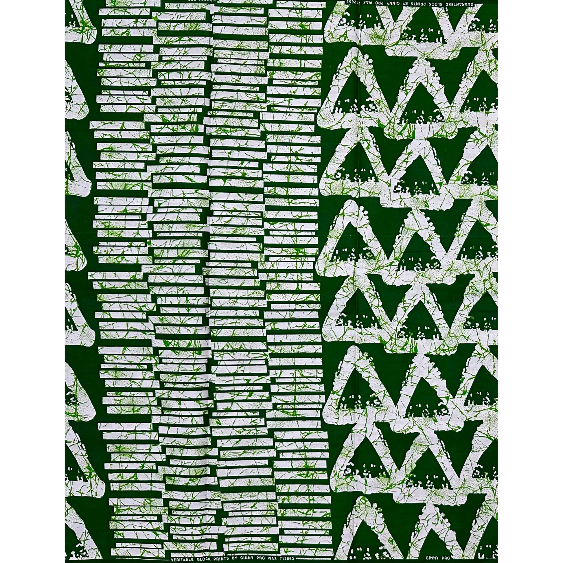 African Print Fabric/ Ankara - Green, White 'Eko Tab ' Design, YARD or WHOLESALE