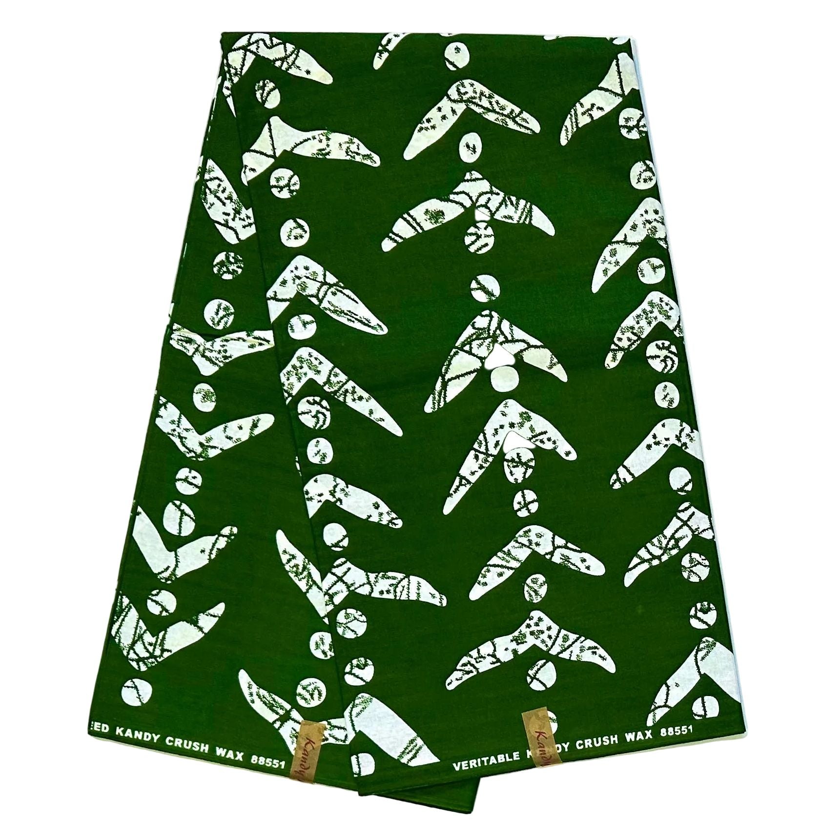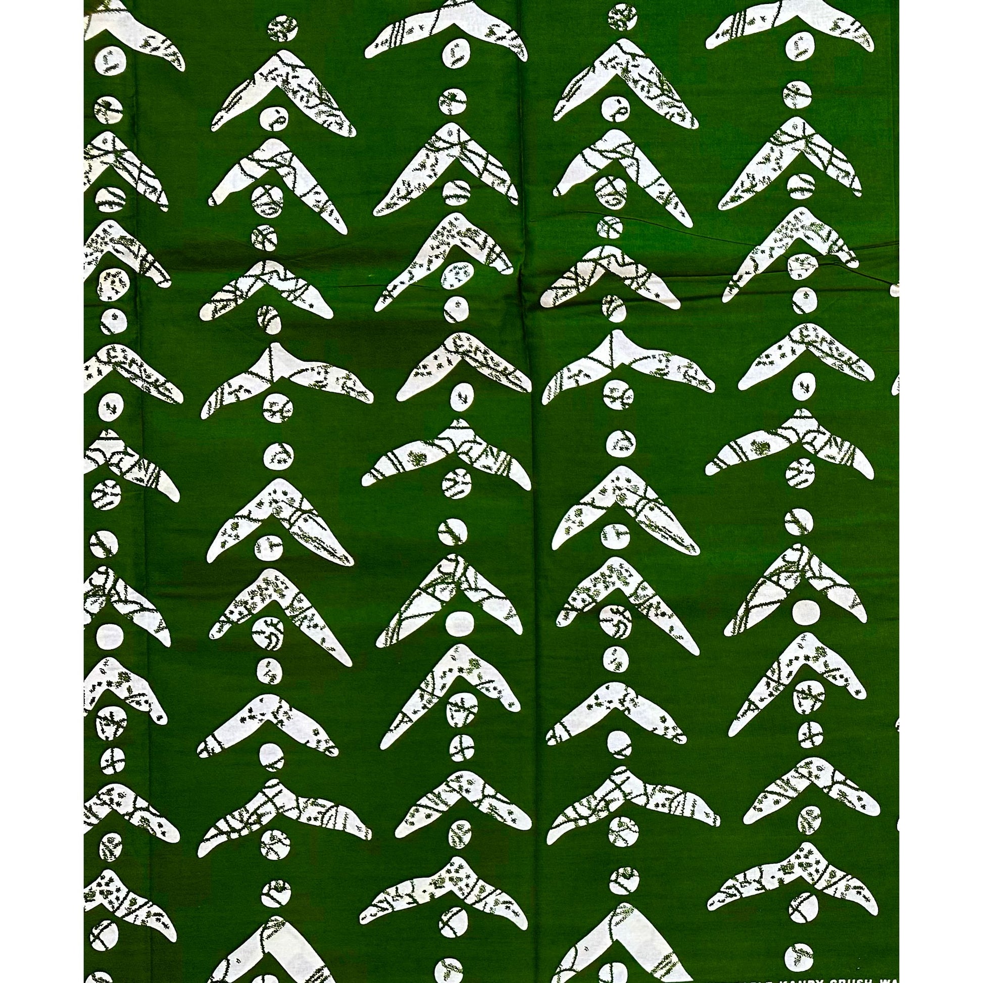 African Print Fabric/ Ankara - Green, White 'Story of the Road' Design, YARD or WHOLESALE