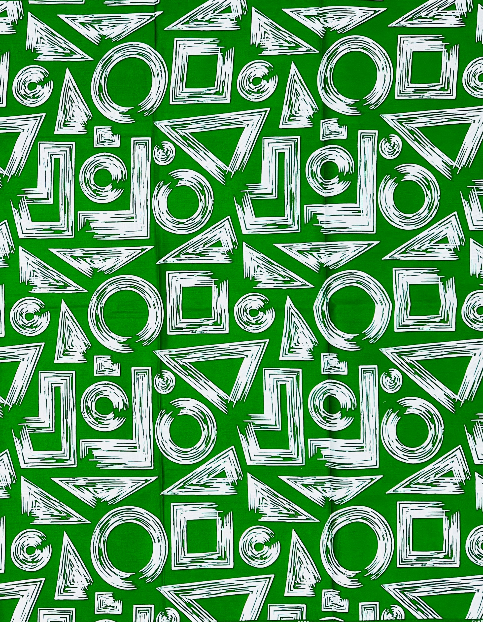 African Print Fabric/ Ankara - Green, White 'Tatu Forms' Design, YARD or WHOLESALE