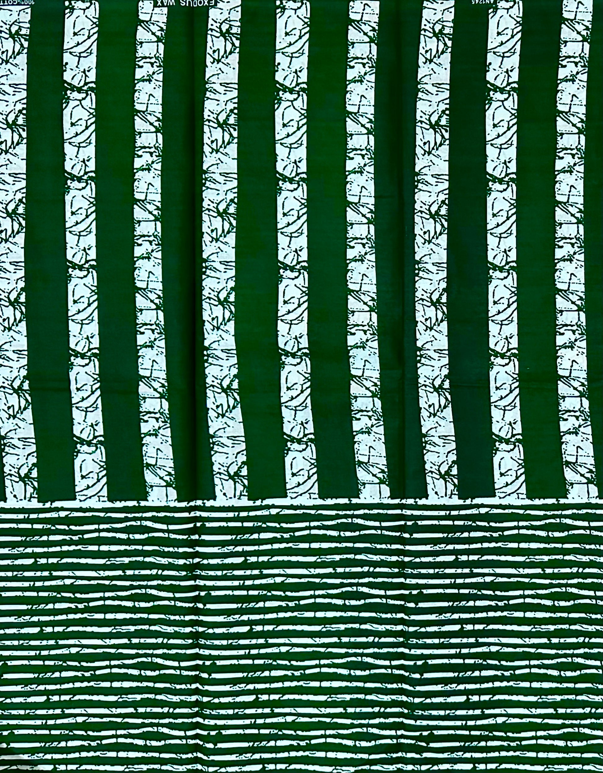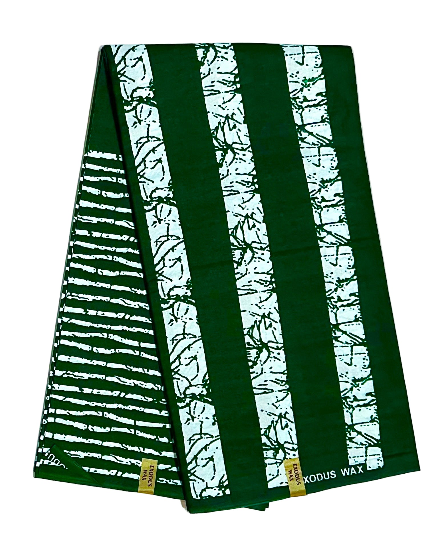 African Print Fabric/ Ankara - Green, White 'Iroko Lineage ' Design, YARD or WHOLESALE