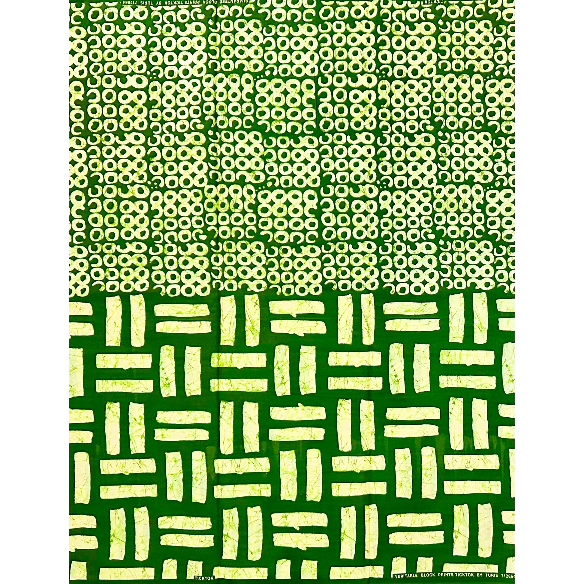 African Print Fabric/ Ankara - Green, Cream 'Aso Koto Lines' Design, YARD or WHOLESALE