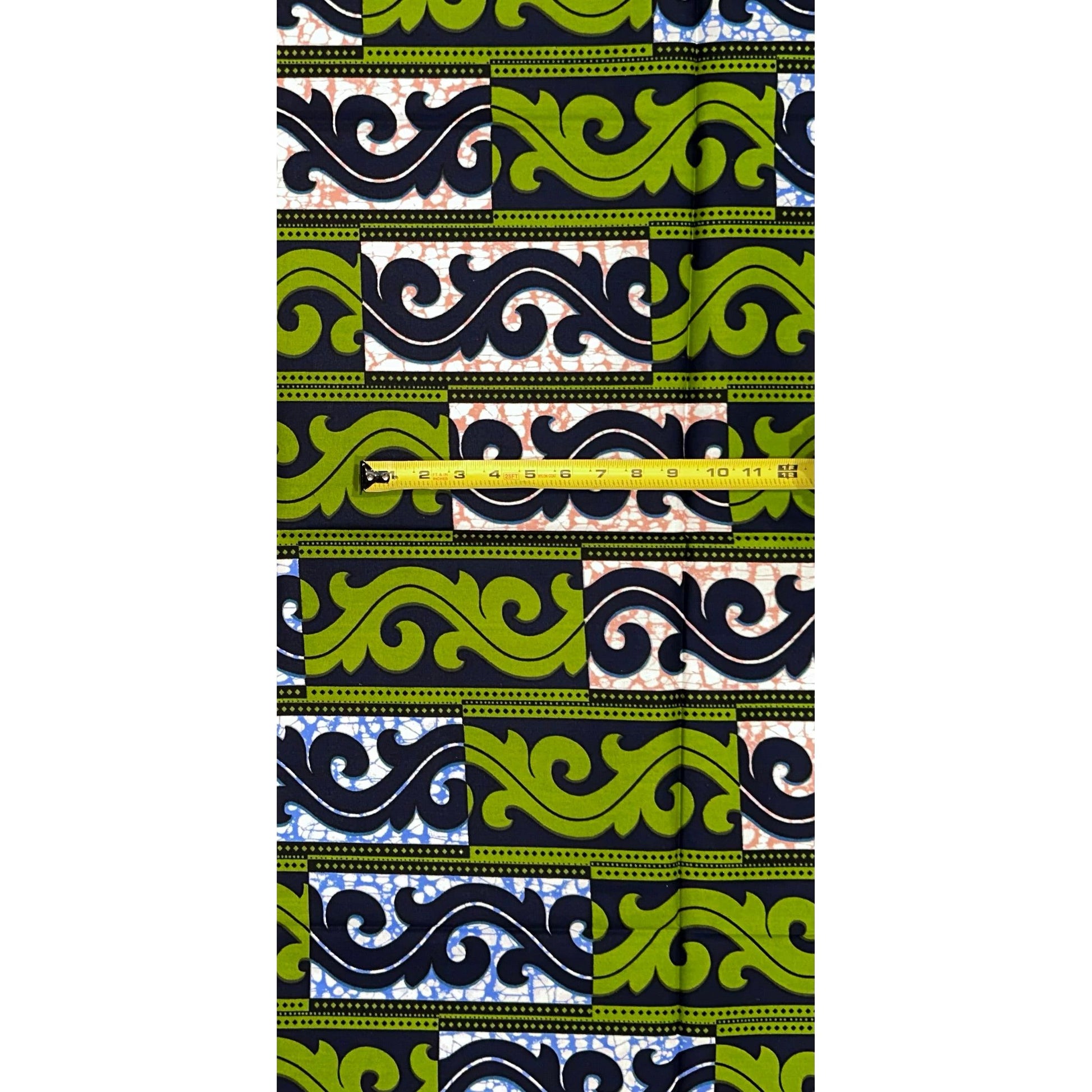 African Print Fabric/ Ankara - Green, Blue, Dusty Pink ‘Brick & Thunder' Design, YARD
