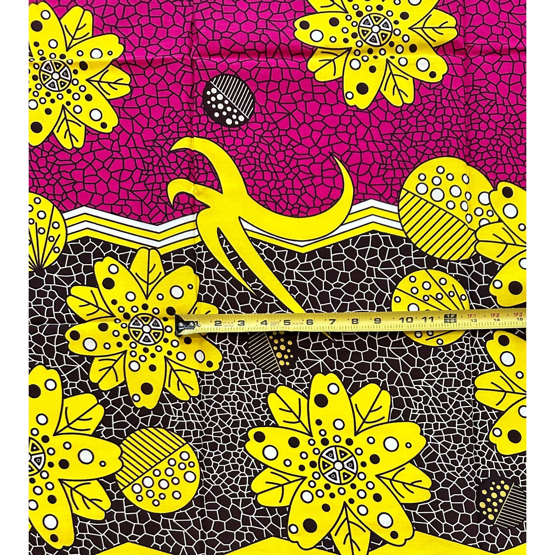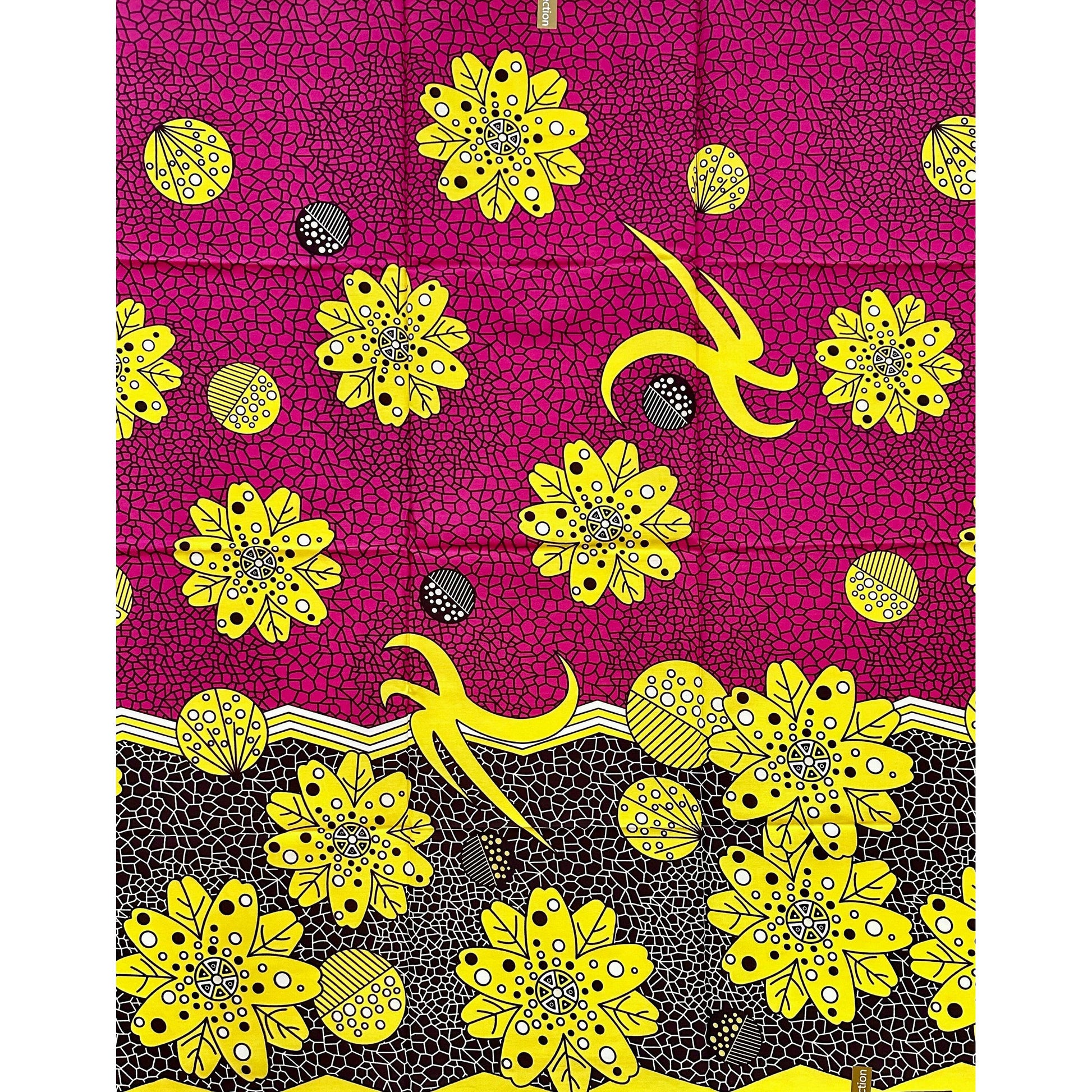 African Print Fabric/Ankara - Magenta, Yellow, Brown "Tawa Iba" Design