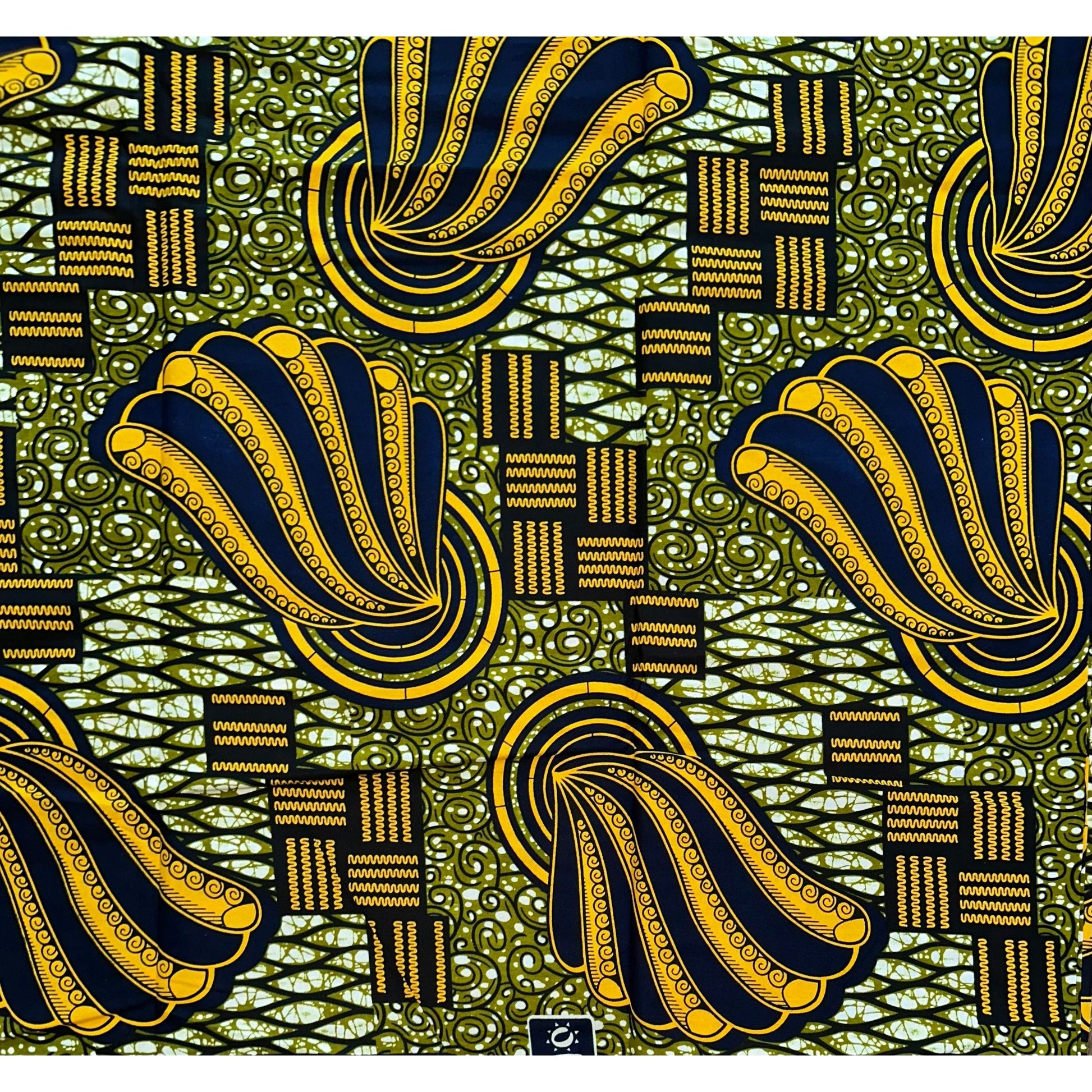African Print Fabric/ Ankara - Navy, Yellow, Brown 'Ringer', YARD or WHOLESALE