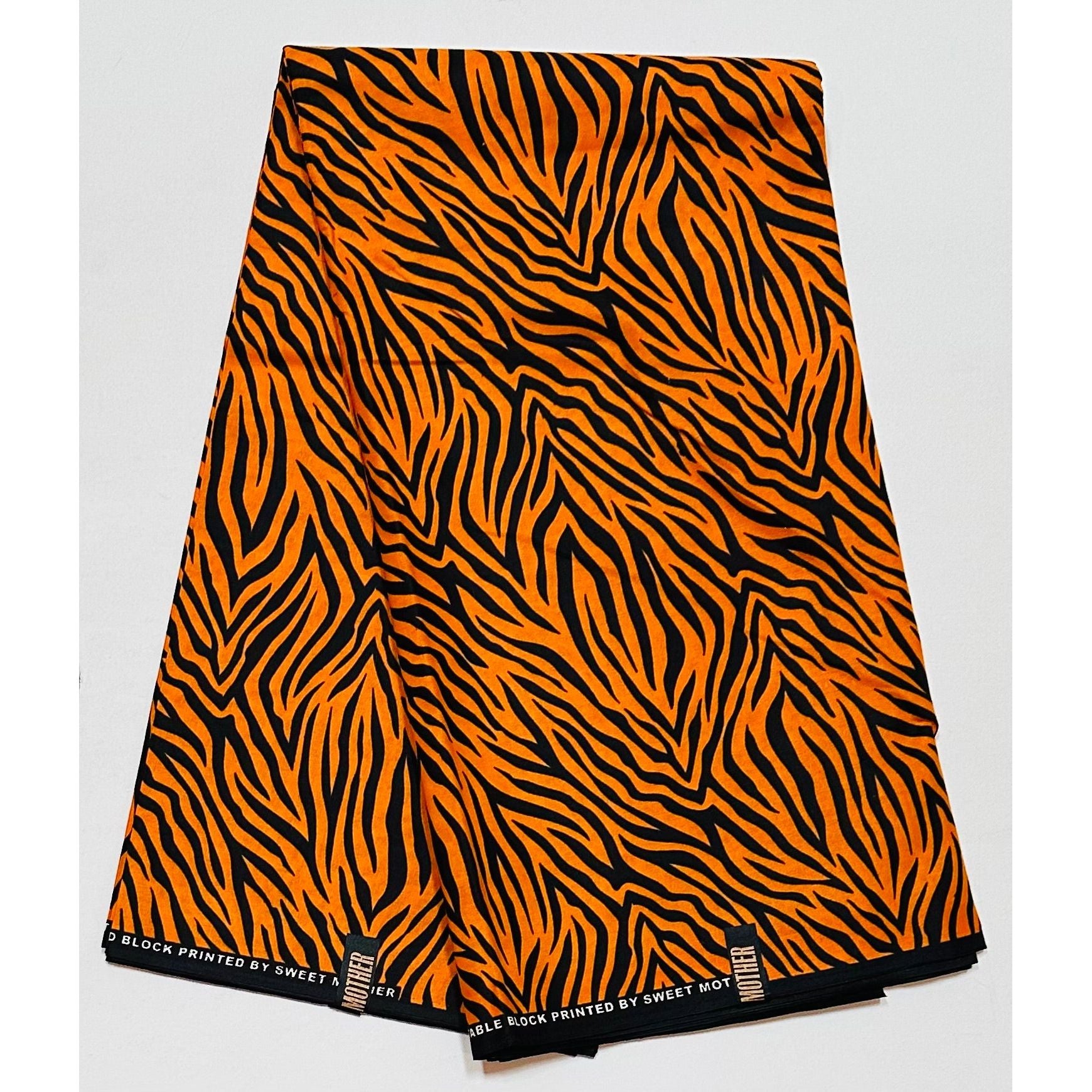 African Print Fabric/ Ankara - Orange, Black 'Sabi Savage' Design, YARD or WHOLESALE