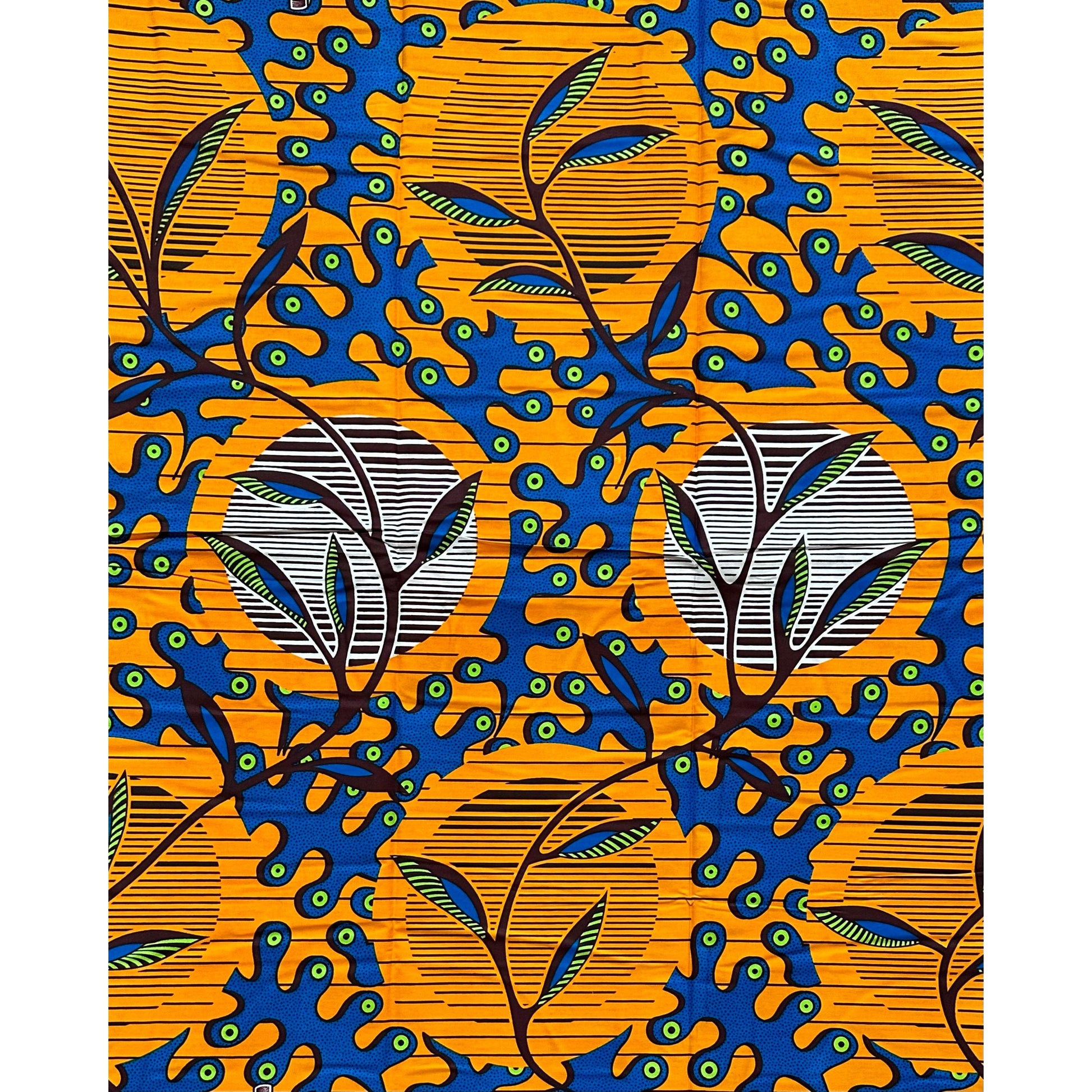 African Print Fabric/ Ankara - Orange, Blue, Green, Brown 'Celestial Puzzle,’ YARD or WHOLESALE