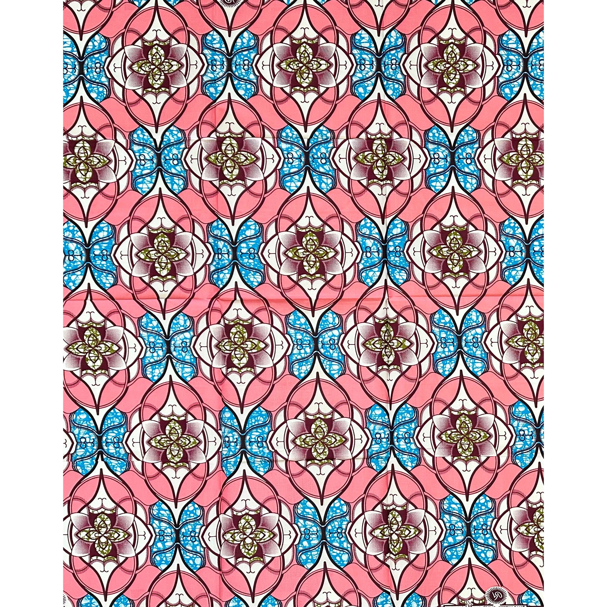 African Print Fabric/ Ankara - Pink, Blue, Brown 'Nubia Lotus,’ 1 YARD