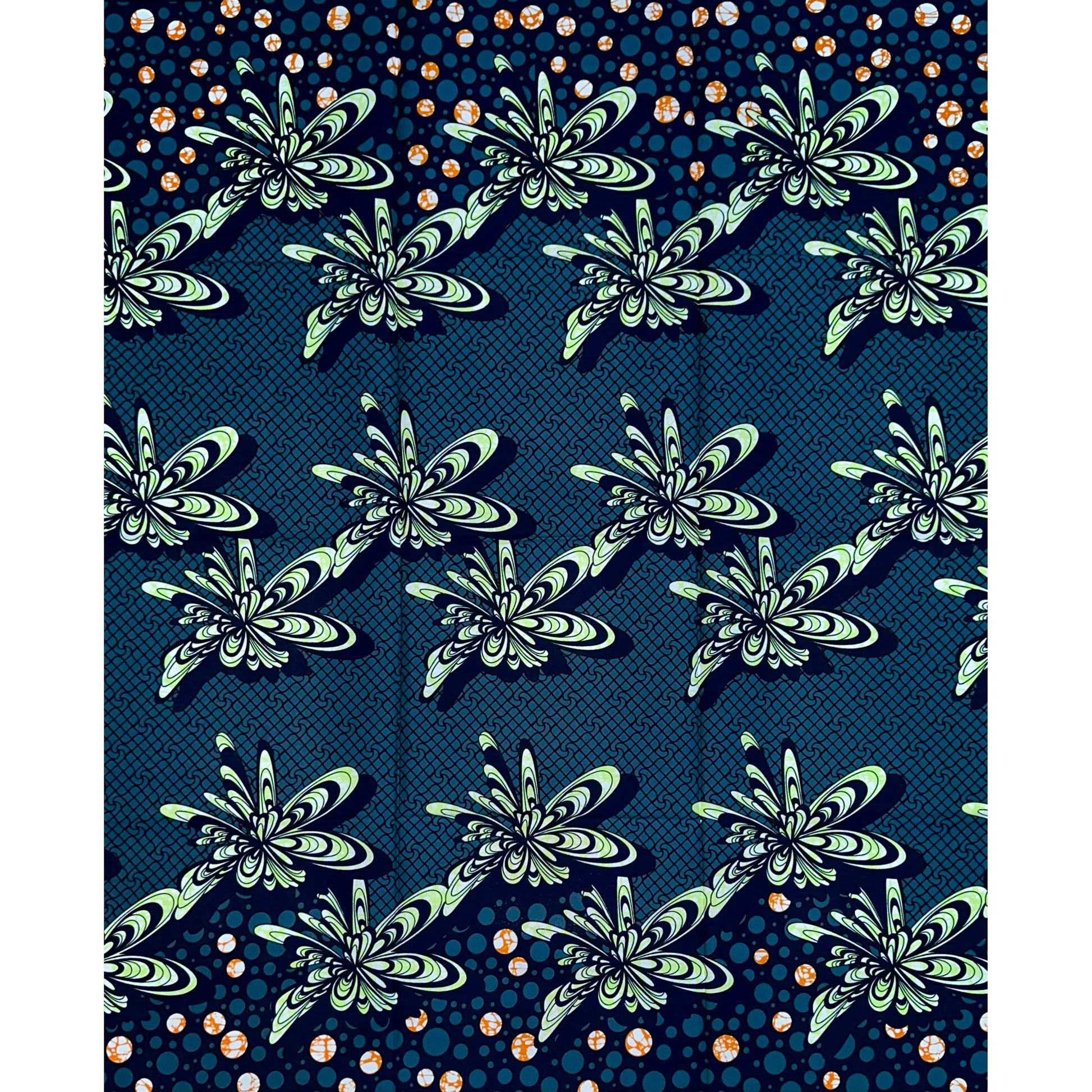 African Print Fabric/ Ankara - Gray, Blue, Green, Orange ‘Star Scatter,' YARD or WHOLESALE