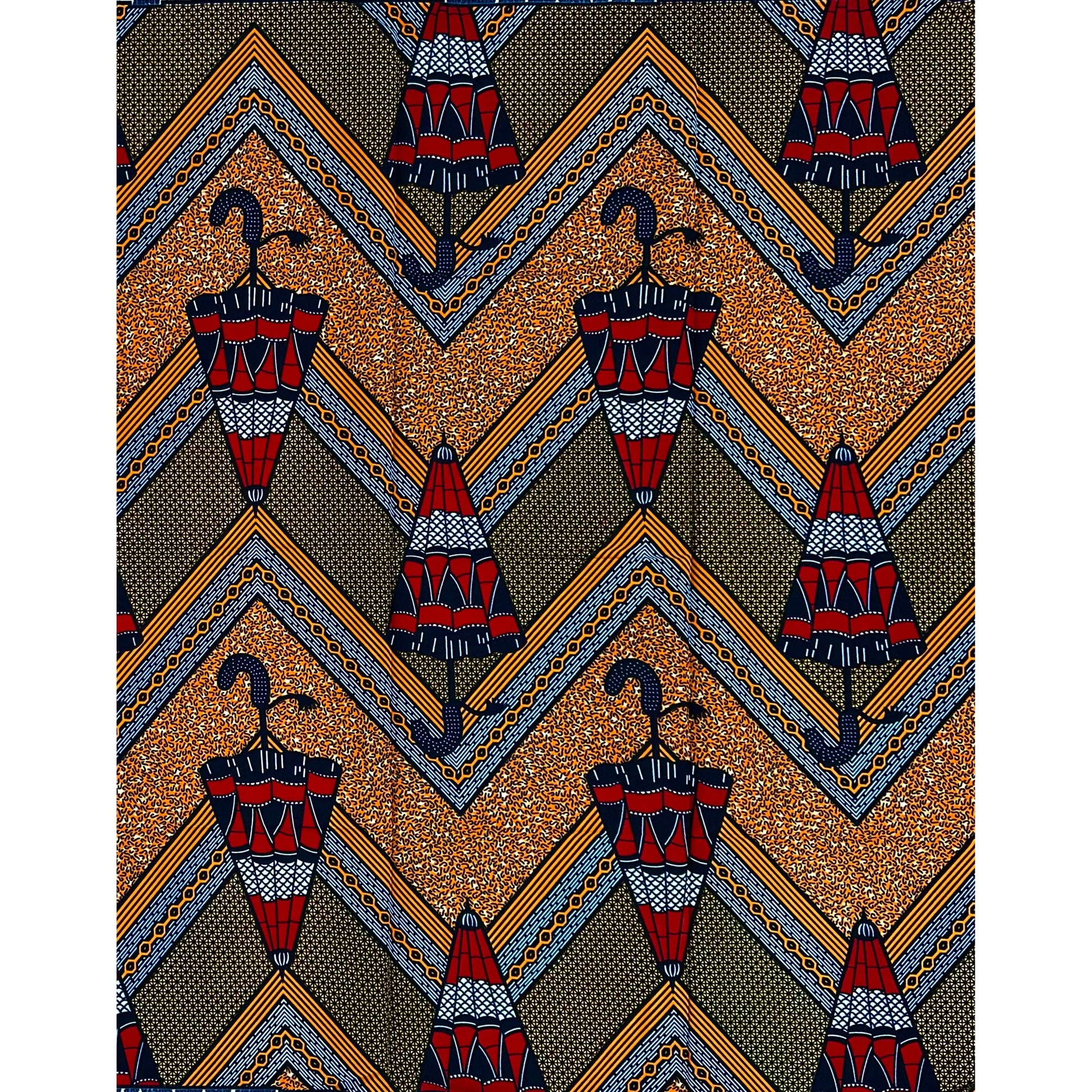 African Print Fabric/ Ankara - Orange, Red, Blue 'No Rain No Stop' YARD