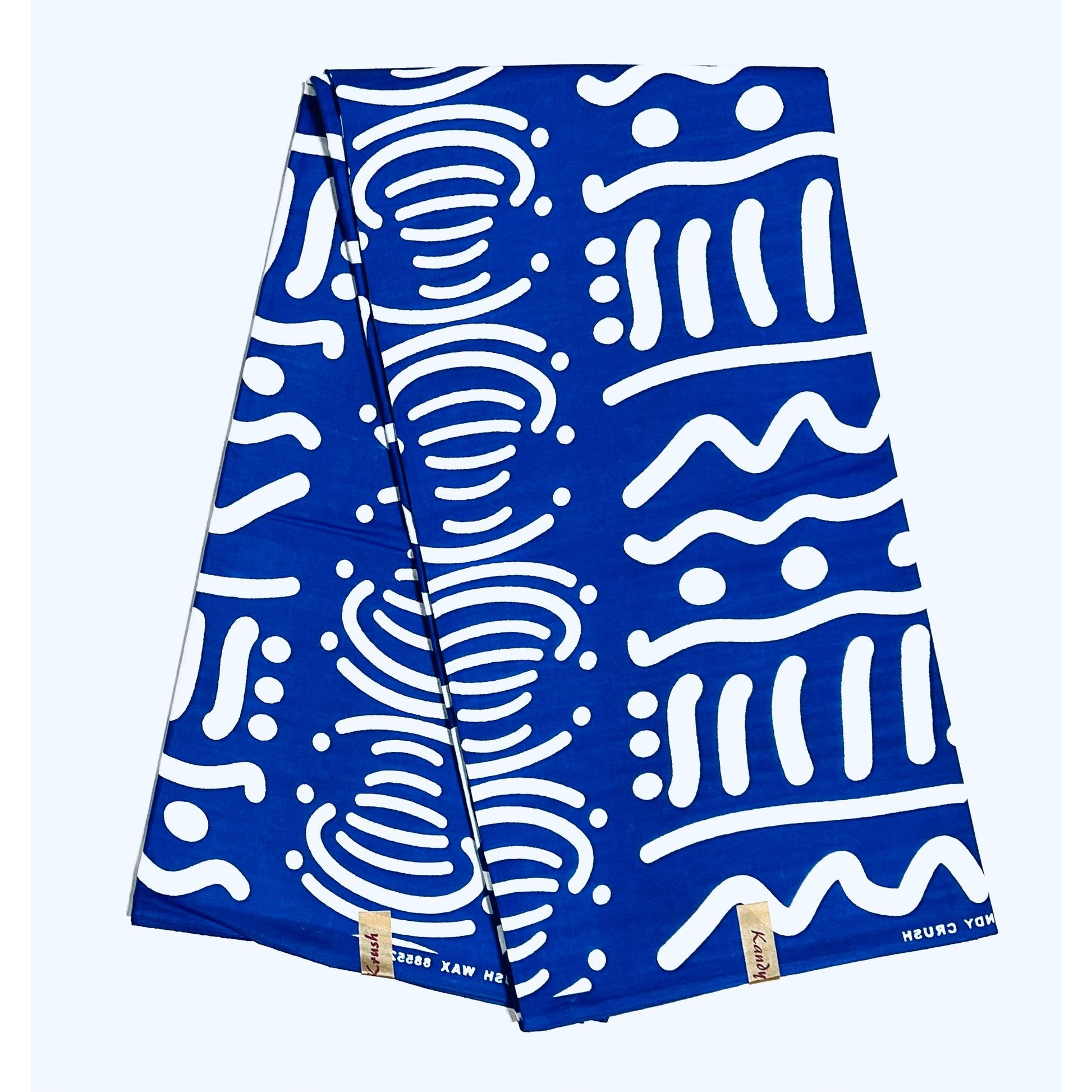 African Print Fabric/ Ankara - Blue, White 'Nuru Script', Per Yard or Wholesale