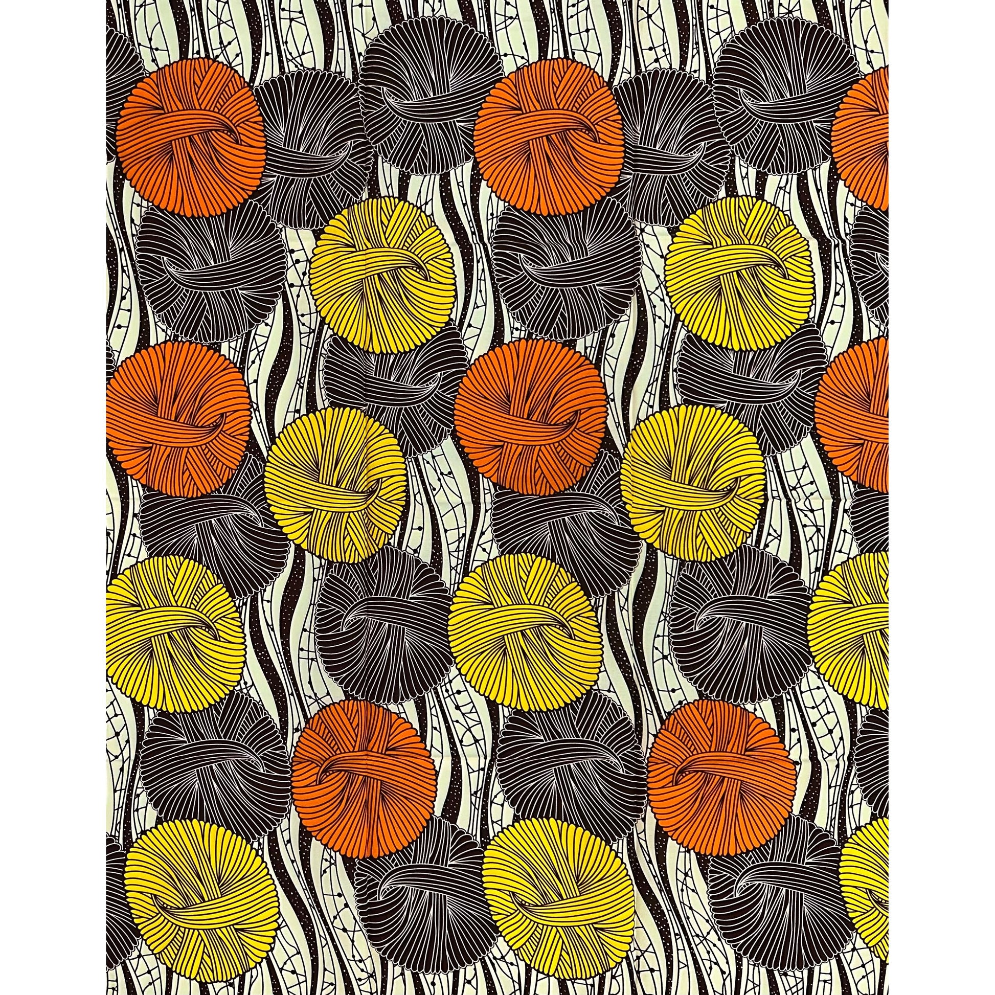 African Print Fabric/ Ankara - Orange, Yellow, Brown, Cream ‘Jioni Sunsong' Design, 1 YARD