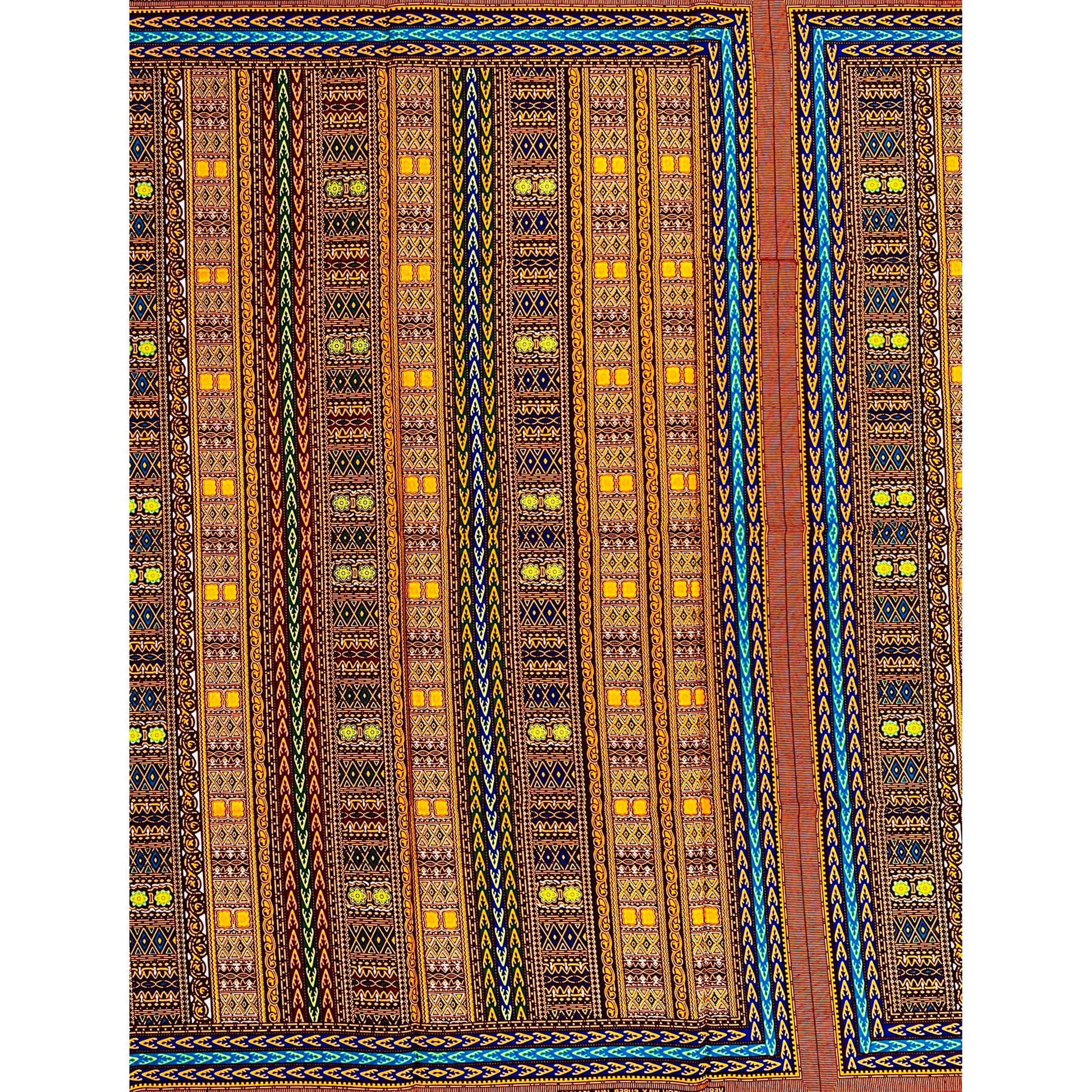 African Print Fabric/ Ankara - Orange, Yellow, Brown ‘Dashiki Crown Lines' Design, 1 YARD